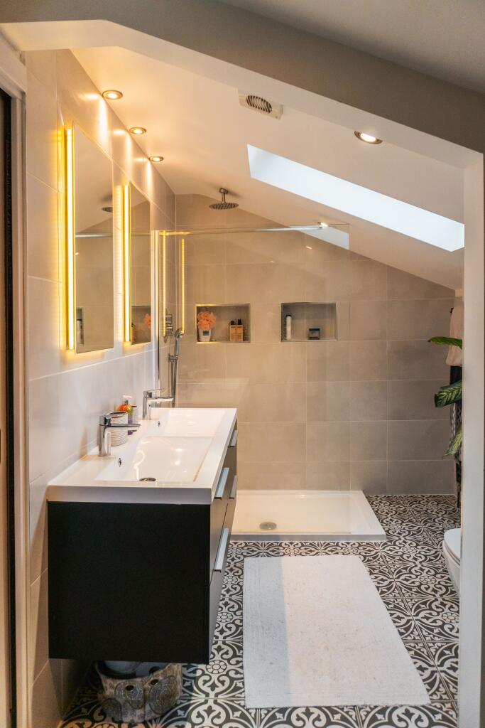 The property itself is presented in excellent condition. The images showcase a modern, high-quality finish throughout, with contemporary fixtures and fittings. There is no apparent need for repair or renovation. The design and layout suggest a comfortable and spacious living environment.
