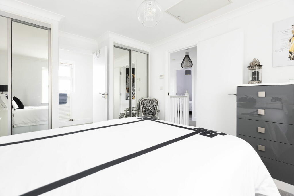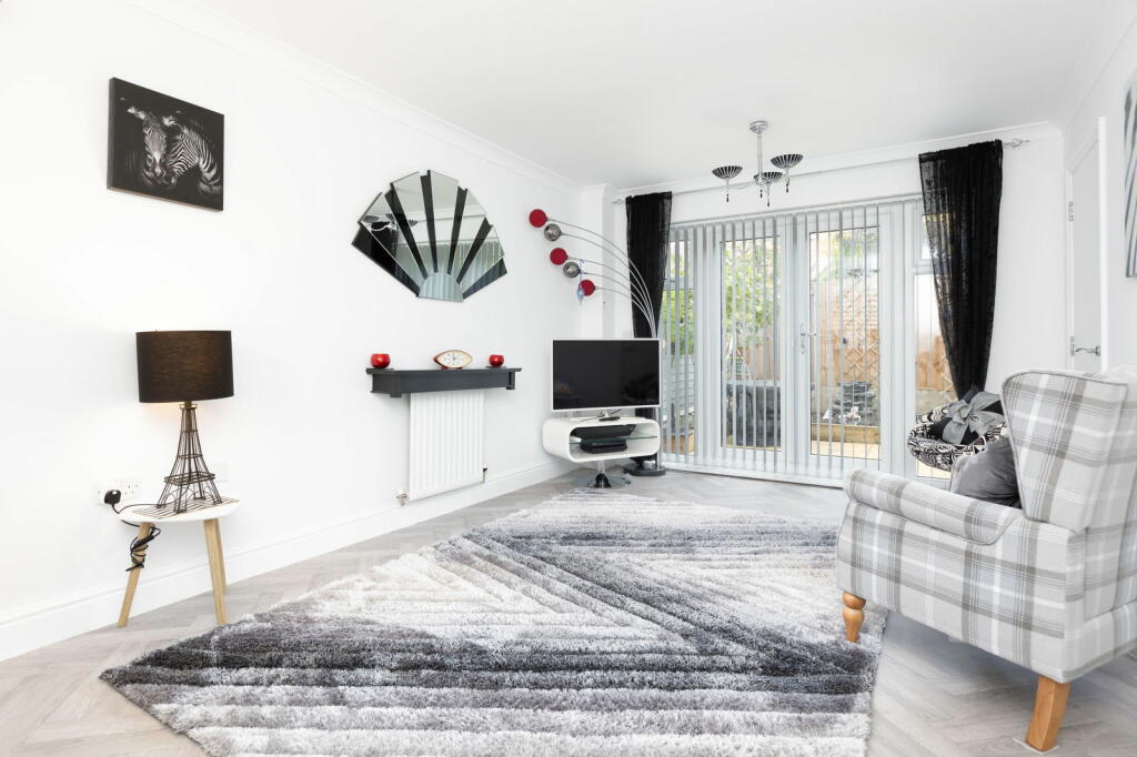 Handsome double fronted home. NO UPPER CHAIN. Redecorated throughout PLUS new flooring. Generous Lounge. Spacious modern Kitchen/Diner with integrated appliances. New Sunroom. Generous landscaped Garden. Large main bedroom with Ensuite and built in wardrobes. Parking for 2 cars. Quote DM0636