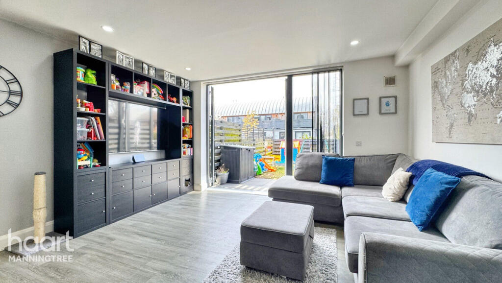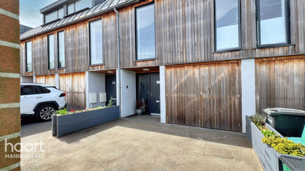 ENERGY-EFFICIENT THREE BEDROOM TERRACED HOME ON HISTORIC NUCLEAR BUNKER SITE IN MISTLEY WITH MODERN DESIGN, VERSATILE LIVING SPACES, PRIVATE WEST-FACING GARDEN, OFF-ROAD PARKING, AND EXCELLENT TRANSPORT LINKS TO LONDON AND COLCHESTER