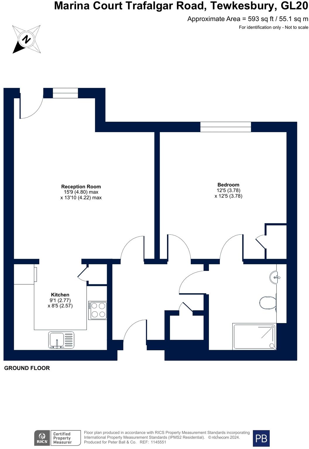 This is a one-bedroom apartment located on Trafalgar Road in Tewkesbury. It is listed by Peter Ball & Co. The apartment is 449.85 sqft and is listed for £138,750. The property is located in an area with good access to local amenities, schools, and transportation. The apartment appears to be in good condition, with a modern kitchen and bathroom. The property benefits from communal gardens and outdoor spaces. The list price seems reasonable considering the size and location of the apartment.