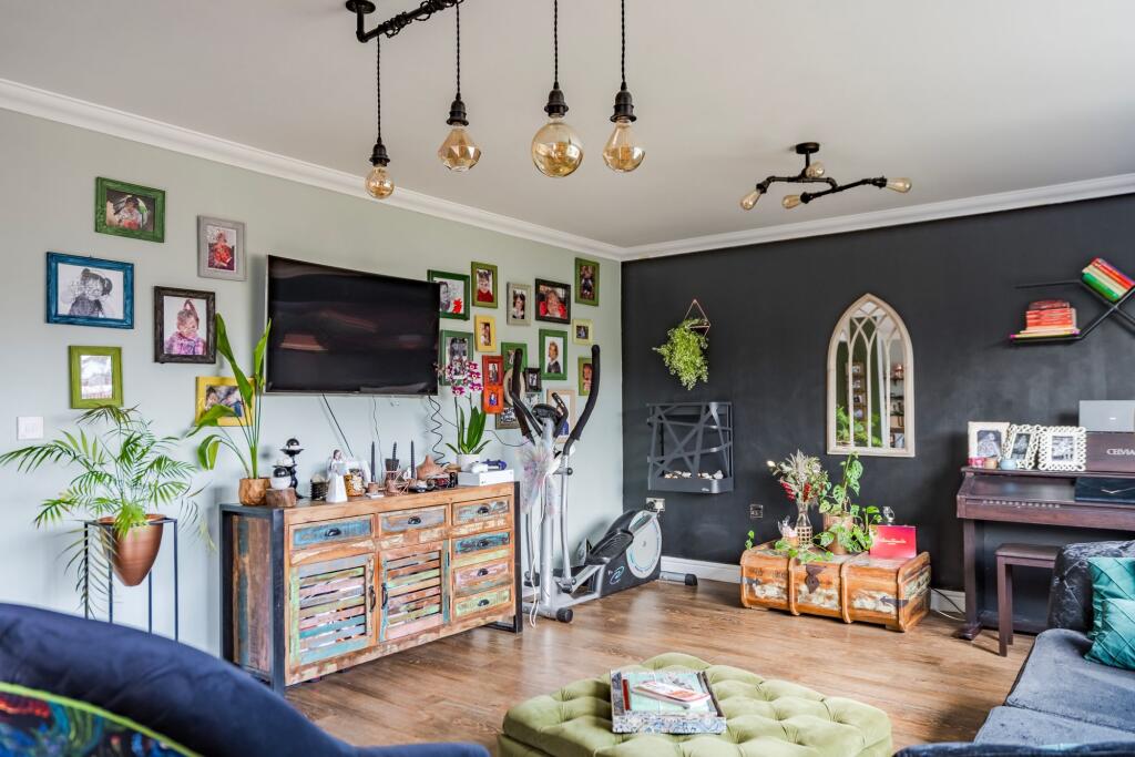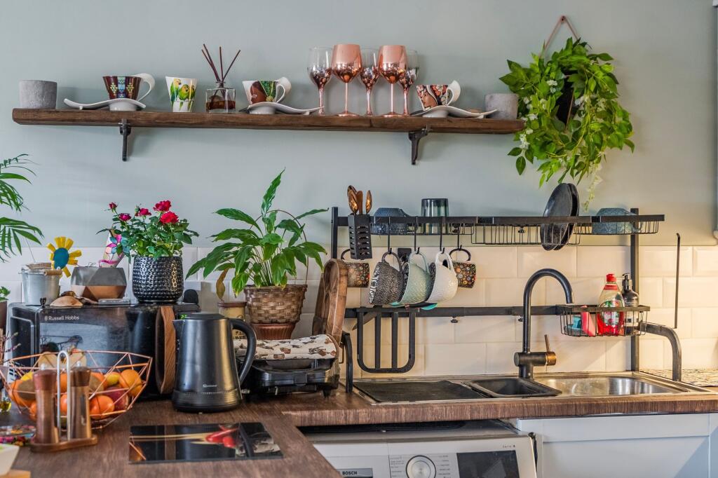 The property appears to be in good condition, having undergone some modernisation while retaining a traditional character. The images show a well-maintained interior with modern fixtures and fittings. There is evidence of a garden, which seems relatively small but adequate for the property type.