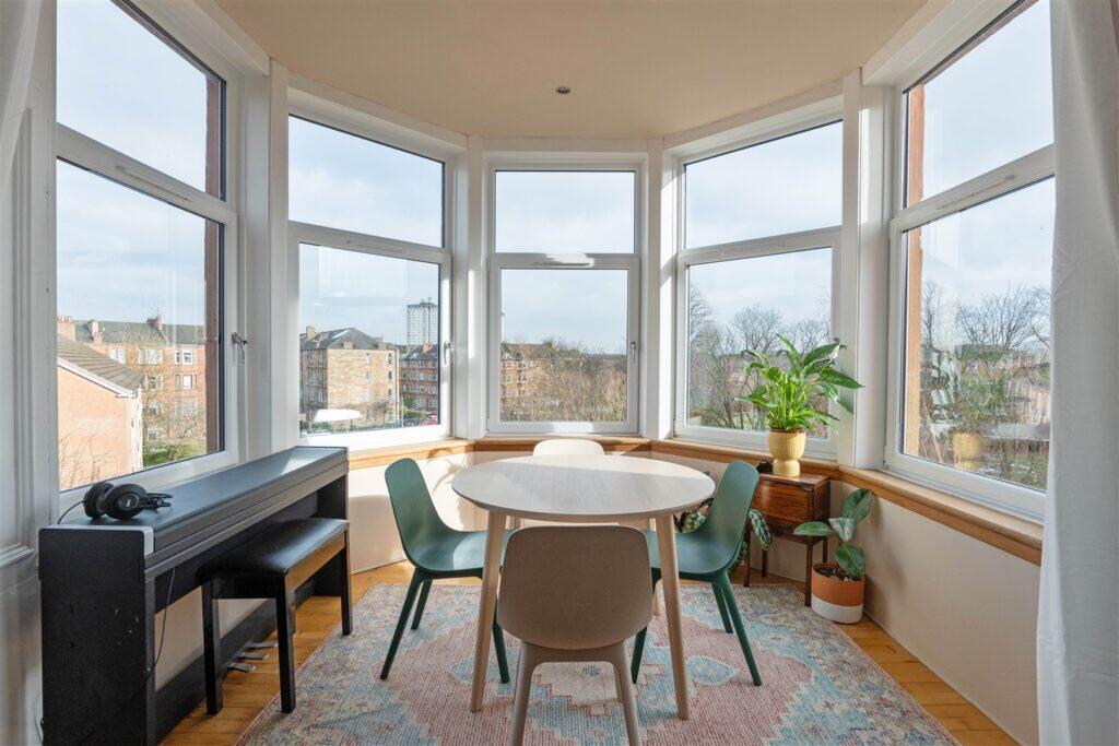 Occupying a bright top floor corner position in the Battlefield district, this impressive flat offers generous room sizes and broad open views across the White Cart river.