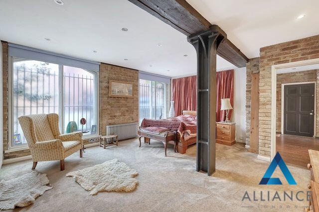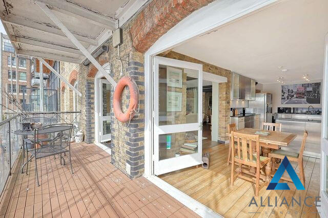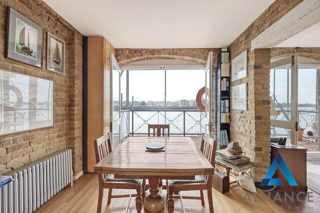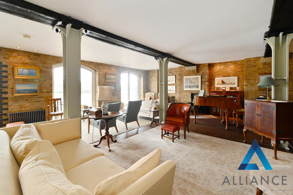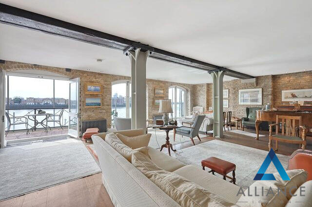 This stunning warehouse conversion offers an expansive 2,927 sq ft (271.93 sq m) of living space, complete with a south-facing balcony that provides breathtaking views of the Thames.