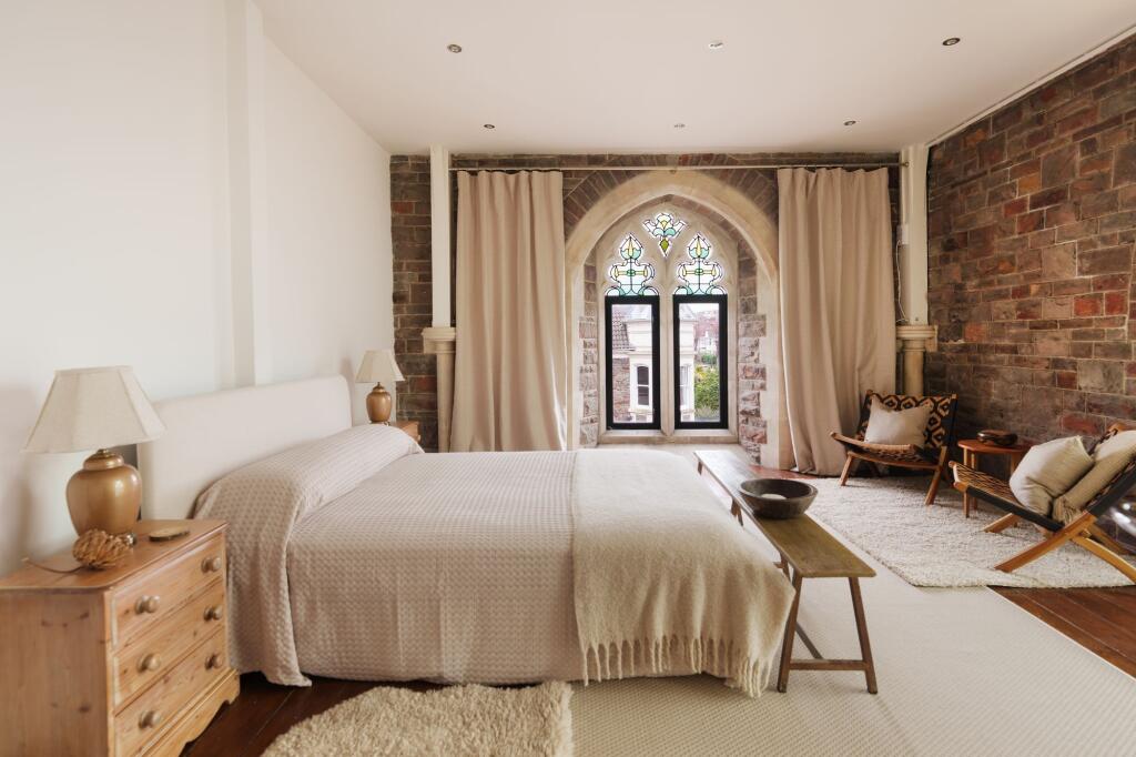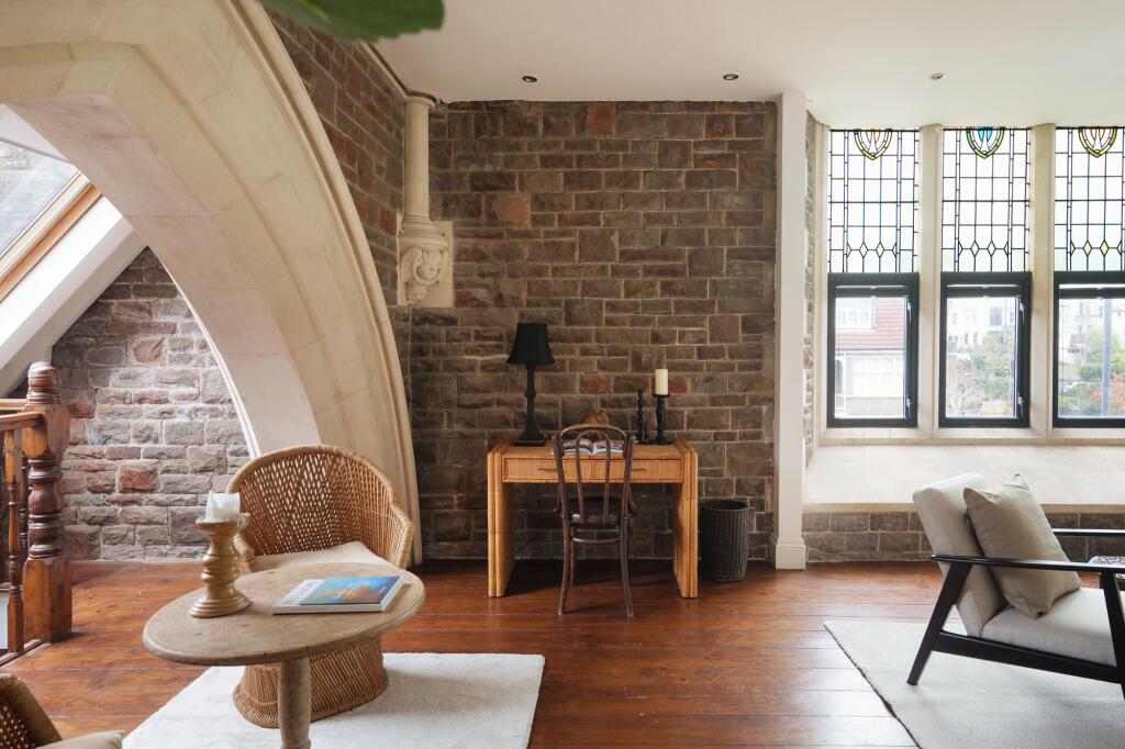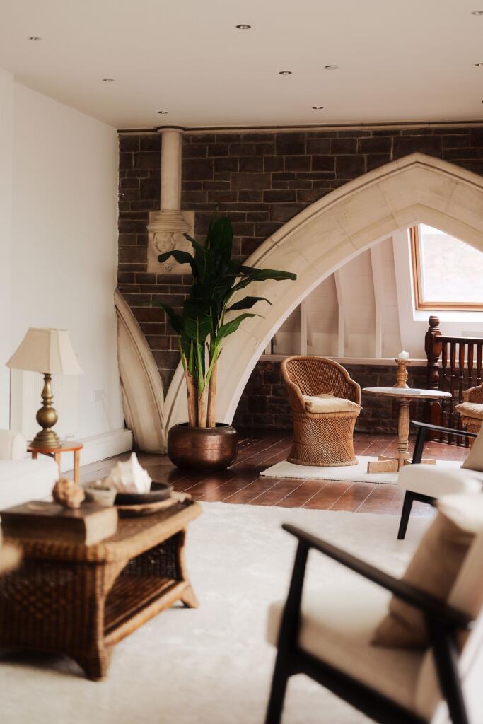 This extraordinary five-bedroom property is set within a beautifully converted church on Kersteman Road, offering nearly 3,000 square feet of highly flexible living space.