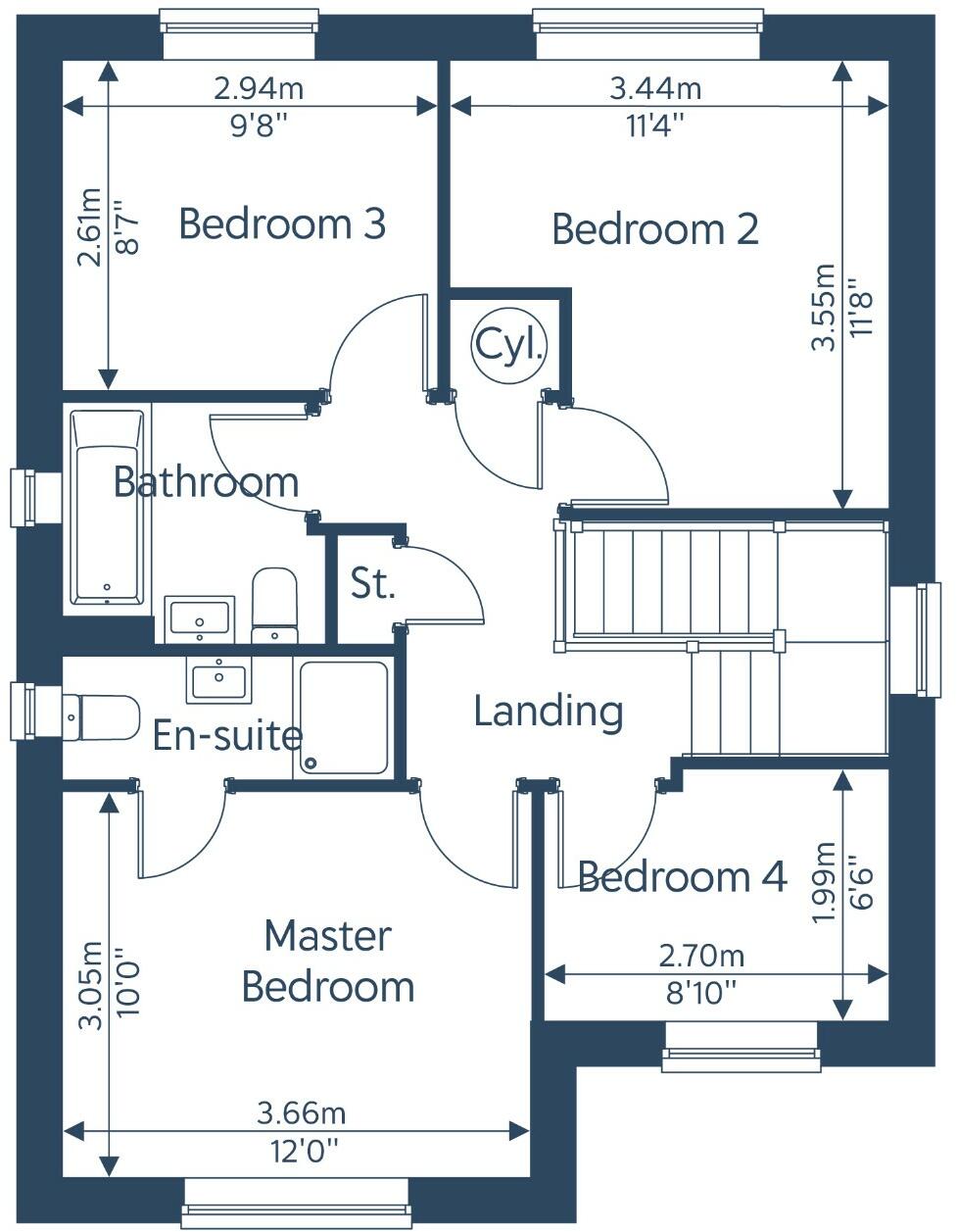 SHOW HOMES LAUNCHING MARCH. The Bowes B includes a separate lounge, modern open plan family/kitchen/diner with doors leading to the garden plus a downstairs wc. On the first floor there is a master bedroom with a stylish en-suite, 3 further bedrooms and a family bathroom.