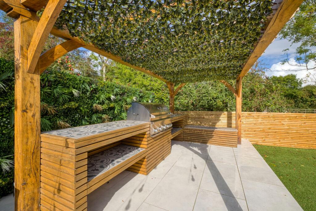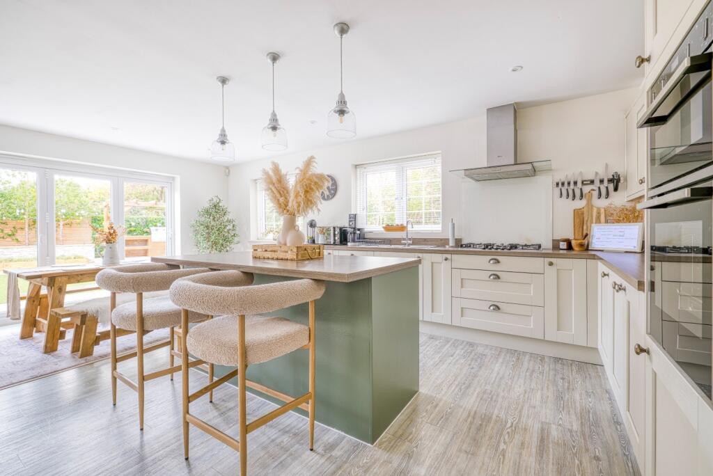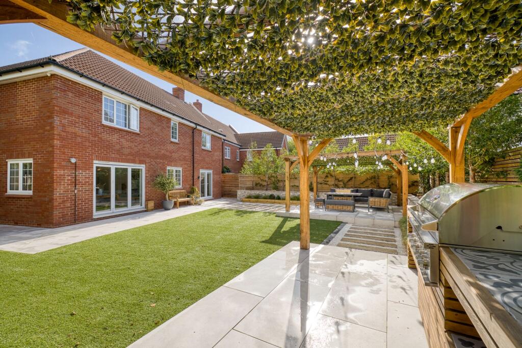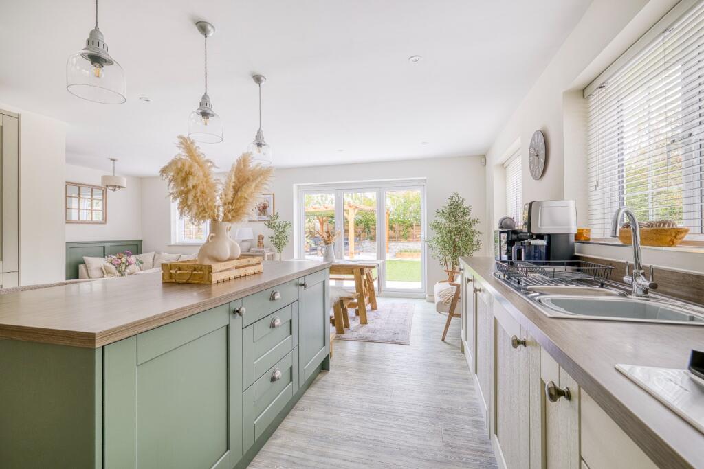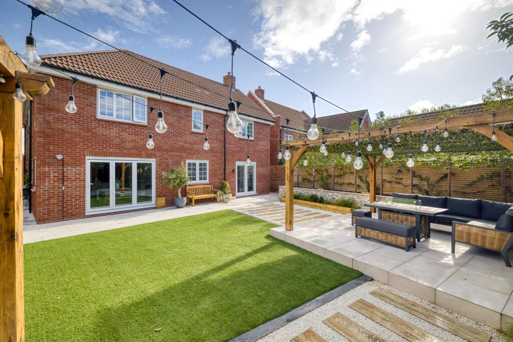 This is a well-presented, modern detached property located in the desirable village of Brent Knoll, Somerset. The house features four bedrooms, two bathrooms, and a modern kitchen. The property also benefits from a well-maintained garden with a patio area, a pergola, and a summer house. The double garage has been converted into a gym. The property is located close to local amenities and schools, and is within easy reach of the M5 motorway. The property is in excellent condition and would make an ideal family home. The price is slightly above the average for the area, but the condition and features of the property may justify the premium.