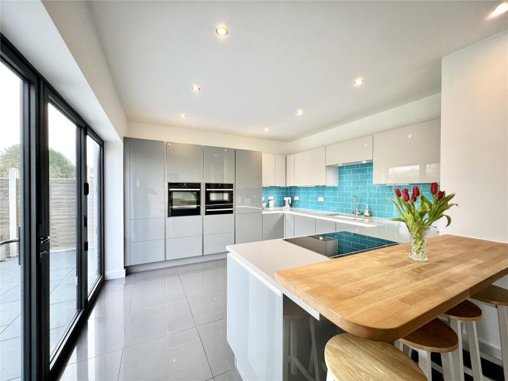 A stunning detached home of about 2,500 with imposing elevations, a high specification interior and large sunny garden. The stylish home features four en-suite bedrooms with designer fittings, impressive open plan living space and an integral four car garage making this a great family home.