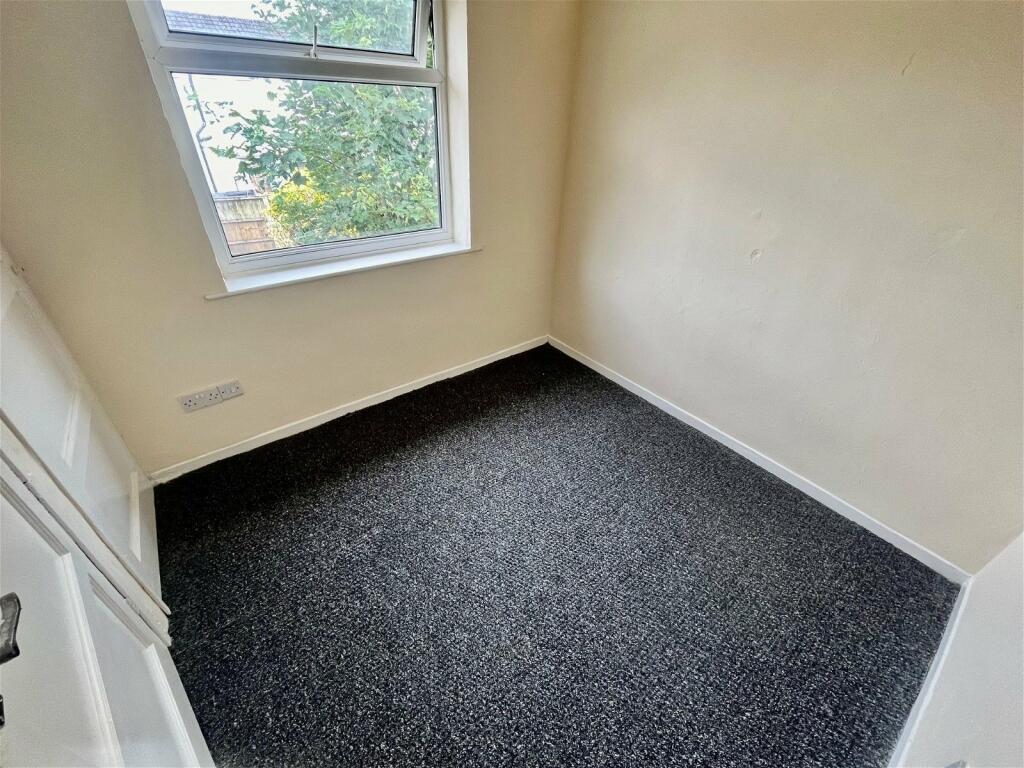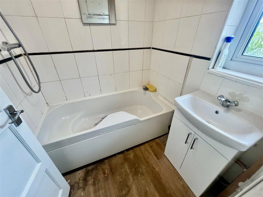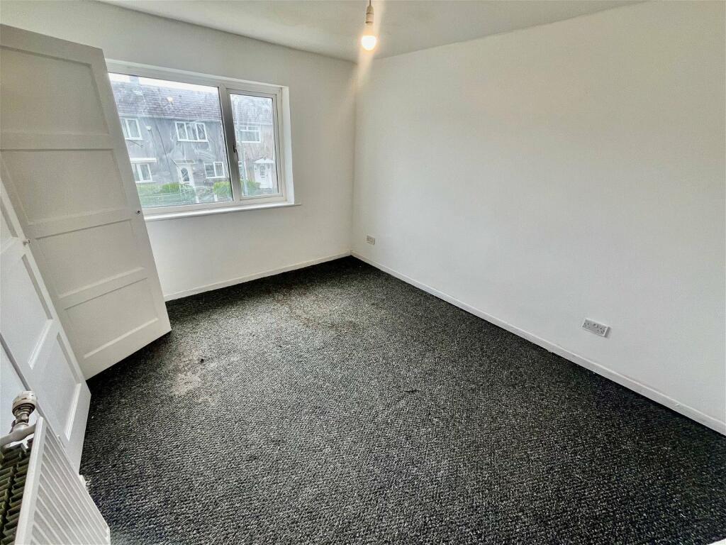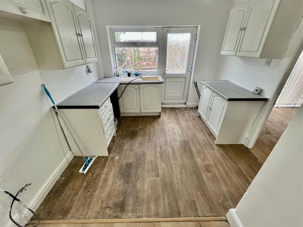 Inside, the property shows its age, needing some refurbishment. The kitchen and bathroom appear dated and would require updating to meet modern standards. The flooring appears consistent throughout, but wall repairs and a general refresh of the décor is needed. There is a small garden present, though it shows signs of neglect and will require work.