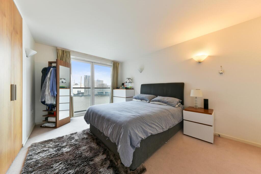 A modern 10th floor, two bedroom apartment boasting breathtaking river views. This is a luxurious and contemporary property with an integrated kitchen, large living room with direct access to the private balcony, two spacious double bedrooms and two high spec bathrooms.