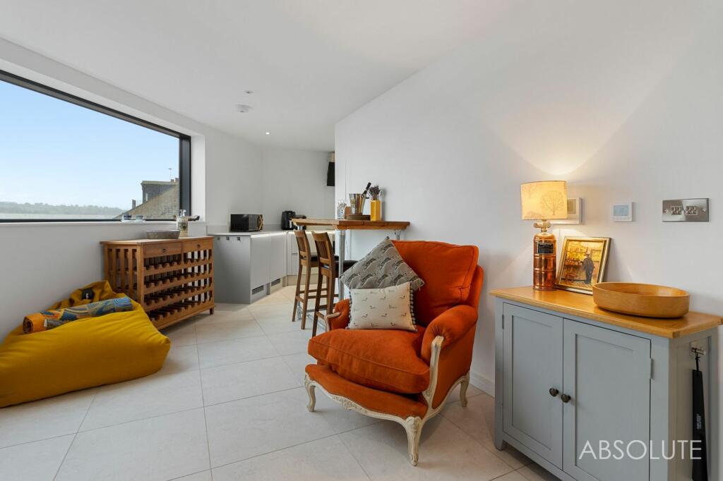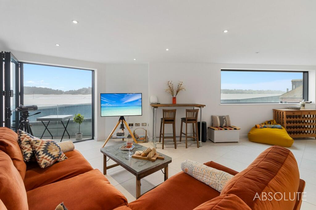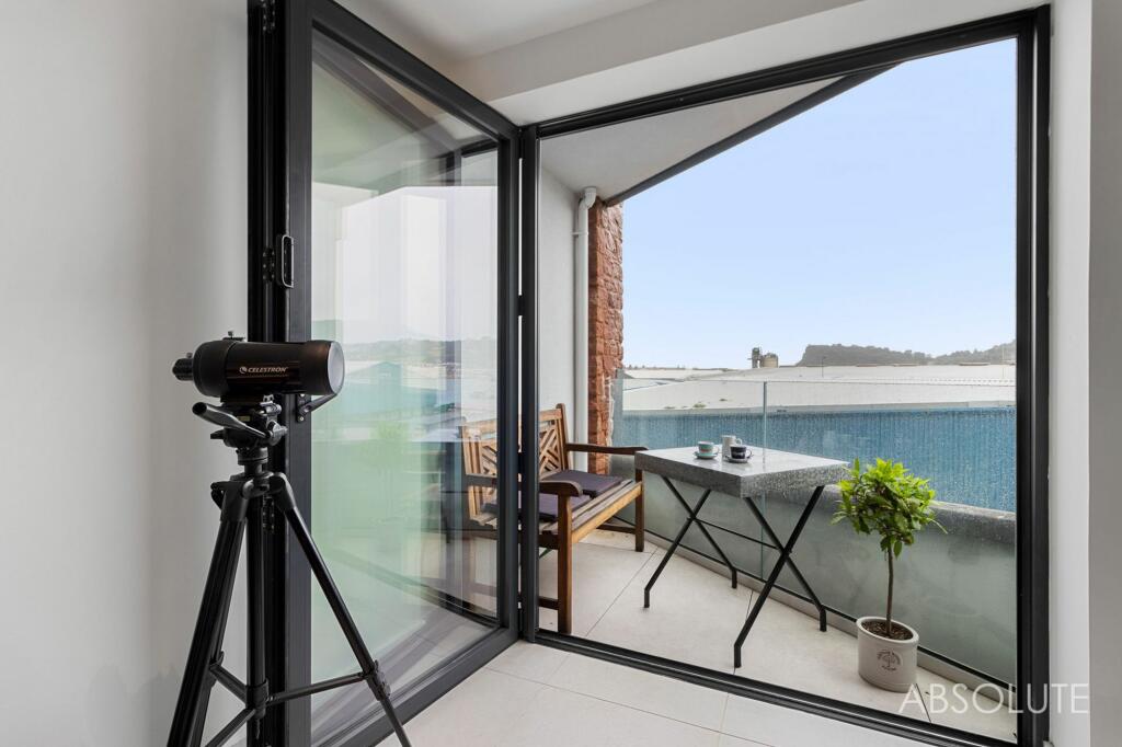 Luxury one-bedroom ground floor flat in Teignmouth with bi-fold doors opening onto private balcony. Features include communal gym, EV charging, underfloor heating, and views towards the Shaldon Village. Ideal for luxury living near beach and town centre.