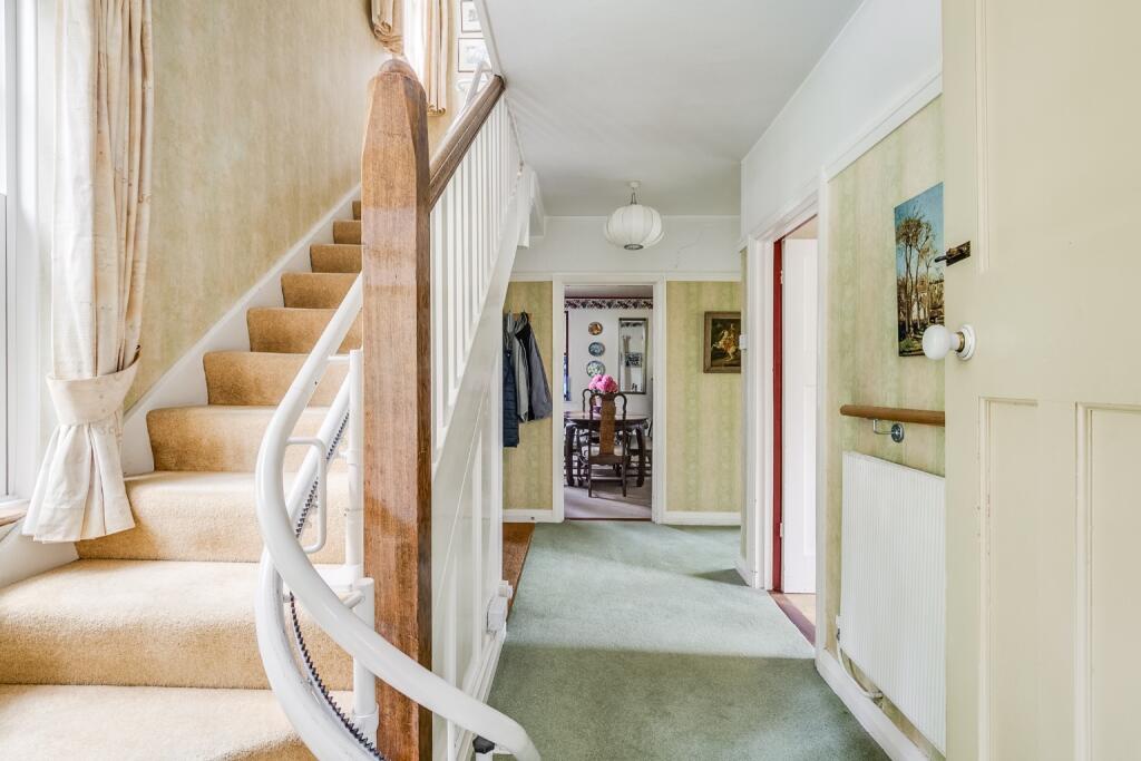 Charming four-bedroom detached home in a sought-after west side location, close to Applecroft School and walking distance to town centre and train station. Features include a 20ft sitting room, separate dining room, kitchen/breakfast room, additional reception room, and a well-stocked garden.