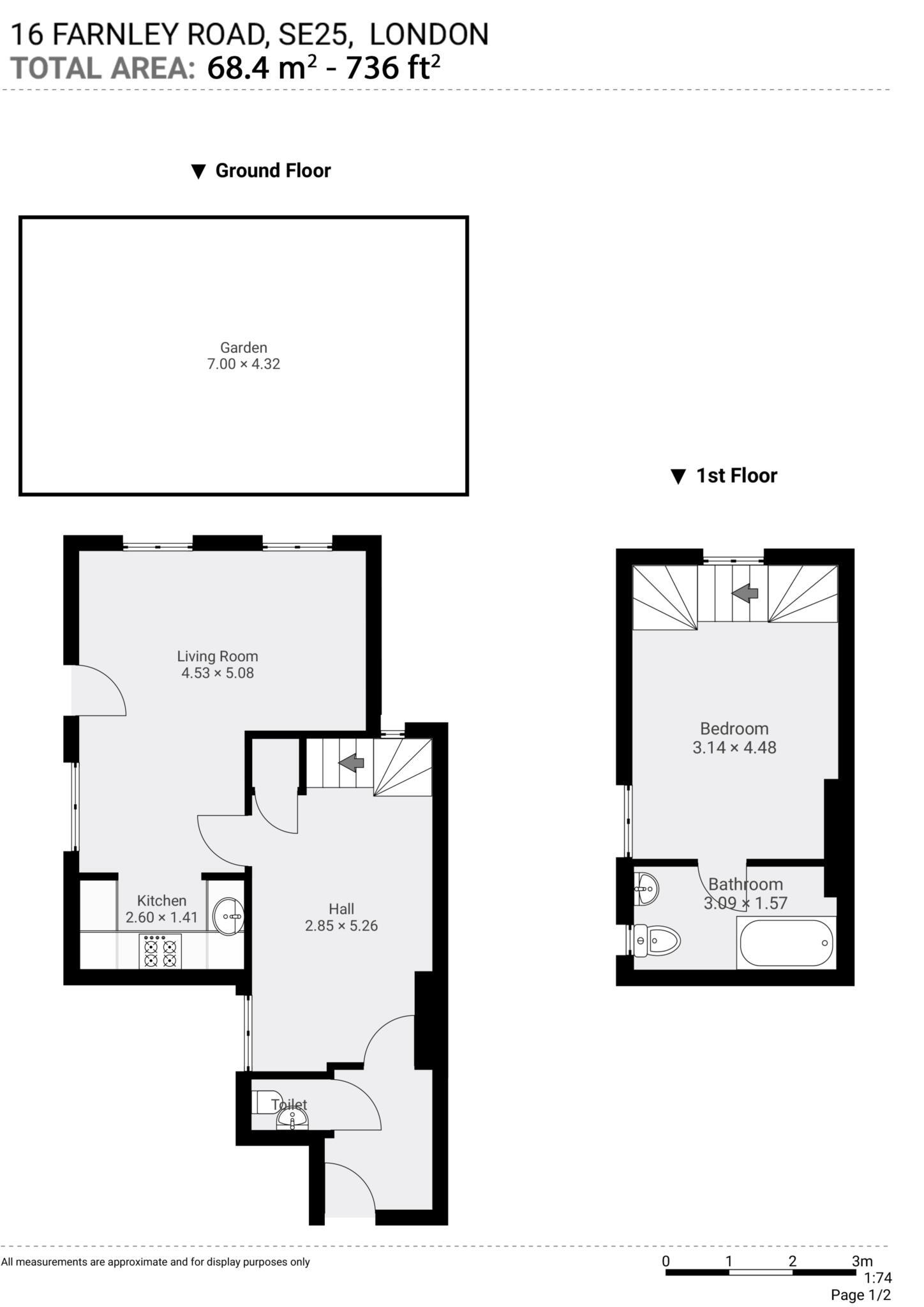 A fantastic one bedroom split level ground and first floor flat converted within a semi-detached 1950`s house with its` own rear garden and presented in immaculate condition. Share of Freehold.