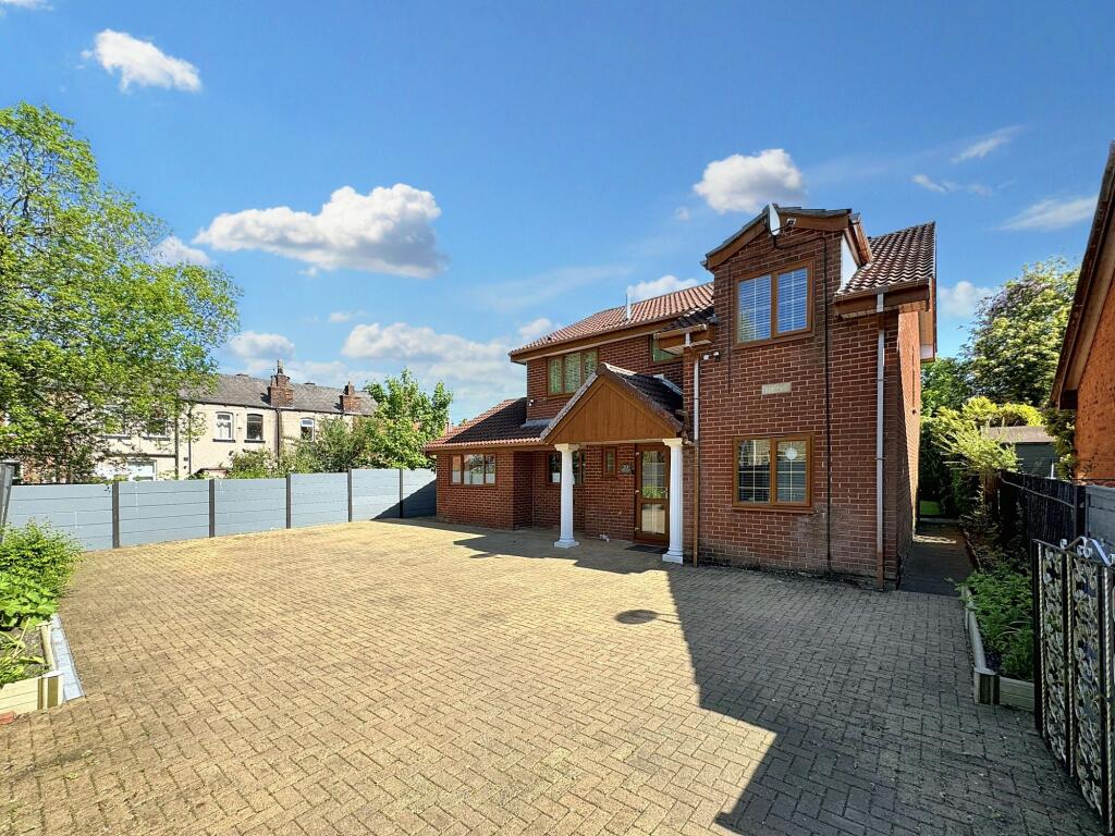 This property is a 4-bedroom, 3-bathroom detached house located in Radcliffe, Bury. The location is reasonably convenient, with several primary and secondary schools within a kilometer radius, and train stations within a 4-6km radius. The property itself appears to be in good condition, with a modern kitchen and updated bathrooms. The images show a well-maintained garden and a sizable paved driveway. The list price is slightly higher than the average price for the area, but considering the property’s size (901.5 sq ft), modern condition, and the inclusion of a garden, it may represent fair value. More information on plot size would be beneficial to further assess the land value.