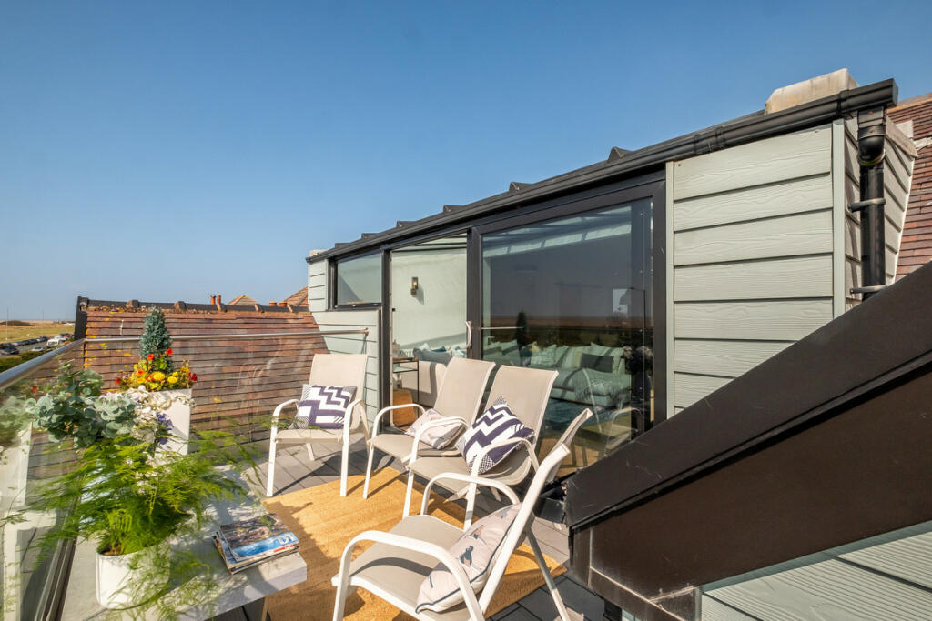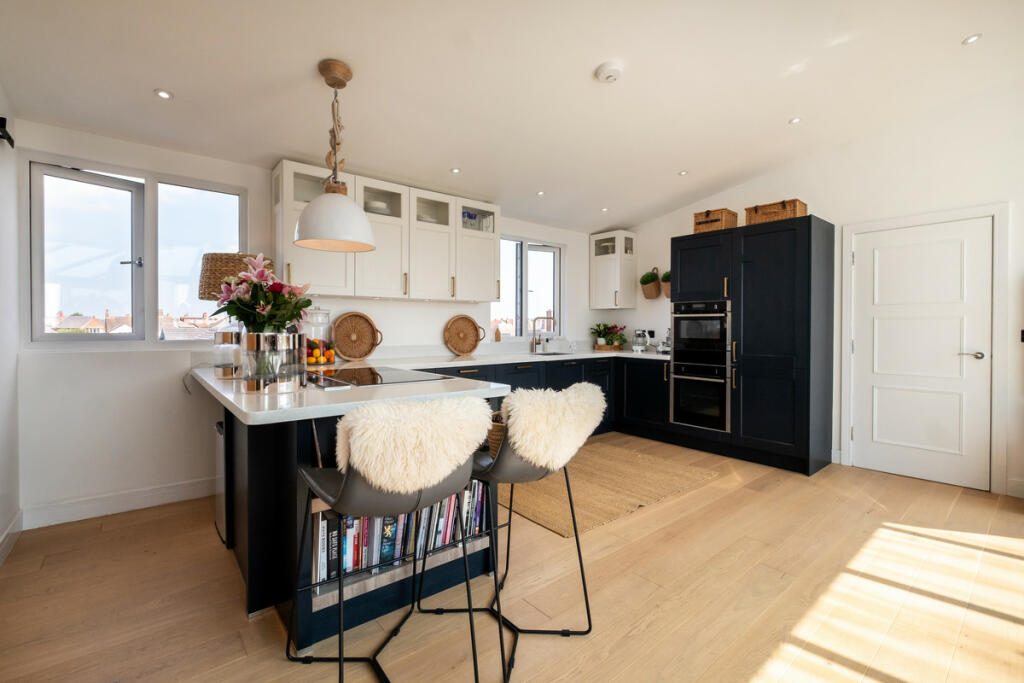 Exceptional top-floor beachfront apartment with stunning coastal views, spacious open-plan living, and prime location near Fairhaven Lake