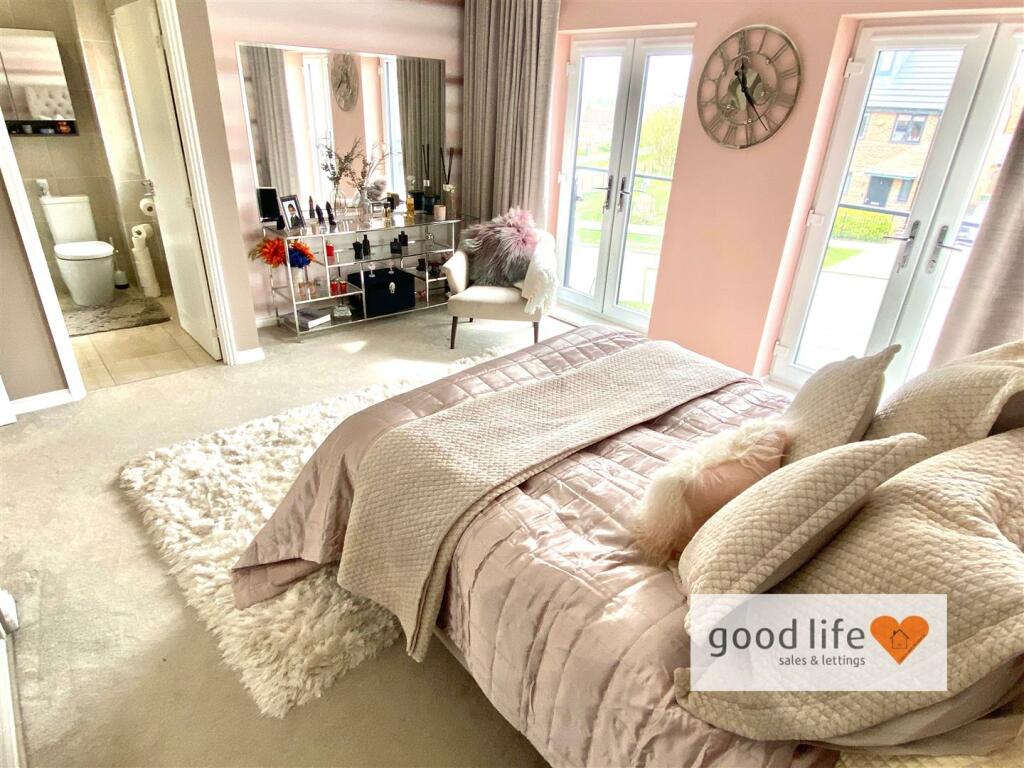 FORMER SHOW HOUSE WITH HOST OF EXPENSIVE UPGRADES - 5 BEDROOMS DETACHED (2 BEDS WITH EN SUITE) - FAMILY BATHROOM WITH BATH AND SEPARATE SHOWER - GORGEOUS MASTER BEDROOM WITH JULIET BALCONIES & SPACIOUS EN SUITE - TERRIFIC OPEN PLAN REAR WITH FAMILY/DINING/KITCHEN ZONES & HIDDEN MIRROR TV - PROFES...