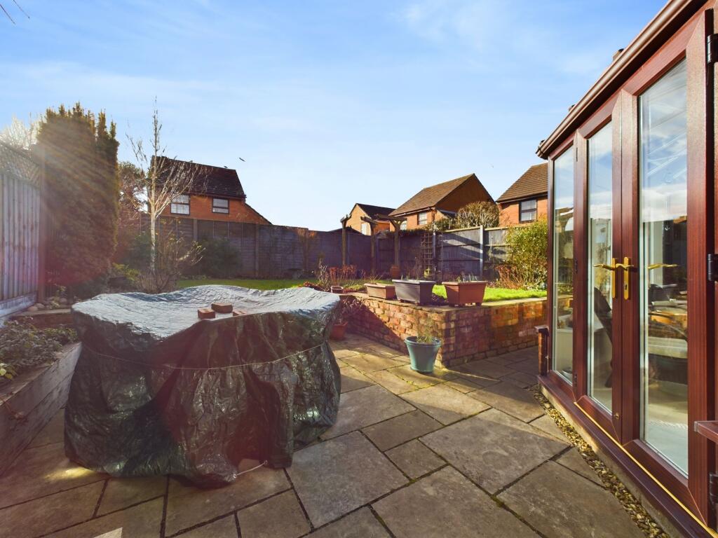 Detached family home, opposite green area, in sought after central Towcester location. Four bedrooms, ensuite to master, family bathroom, kitchen, sitting room, dining room, conservatory and cloakroom. Fully enclosed south/west facing garden, driveway parking for several vehicles and garage.