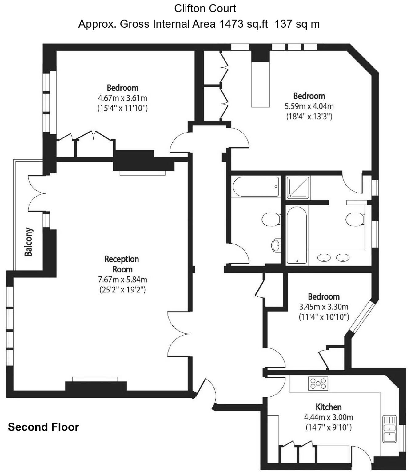 Addison Townsend are delighted to offer for rent this spacious & bright 2nd floor (with lift) three bedroom property in good condition. Comprising of a spacious double reception room with wooden floors, large separate kitchen, master bedroom with en-suite shower room and fitted wardrobes, two fur...