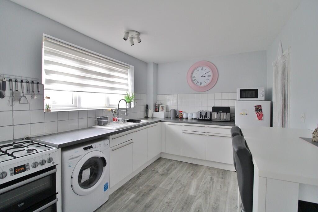 This two-bedroom, one-bathroom flat is situated in the Drayton area of Portsmouth, Hampshire. The property, as shown in the provided images, is presented in clean and well-maintained condition, with a modern, neutral interior decor. The photos show a modern kitchen with integrated appliances and recently updated fixtures. The living area is spacious enough for comfortable living. The bedrooms have built-in wardrobes which are a valuable storage feature. There is a good-sized bathroom with white tiles, showing good overall condition. The property lacks any private outdoor space, which is common in apartment buildings. However, the pictures appear to show access to a shared roof terrace. The proximity to schools rated as ‘Good’ by Ofsted and train stations are positive attributes to the location, and access to local amenities is likely within walking distance. However, other comparable properties in the nearby area (considering listed price and size if available) suggest the listed price of £188,000 may be slightly above the average for similar properties in the immediate area, given that it is not a high specification or unusually large property. A potential buyer should factor this into their decision-making. This is a suitable property for first-time buyers or investors looking for a relatively maintenance-free flat in a convenient location. Considering all features of the property, including a possible slight overvaluation of the price in the current market, it is a functional and moderately attractive property.