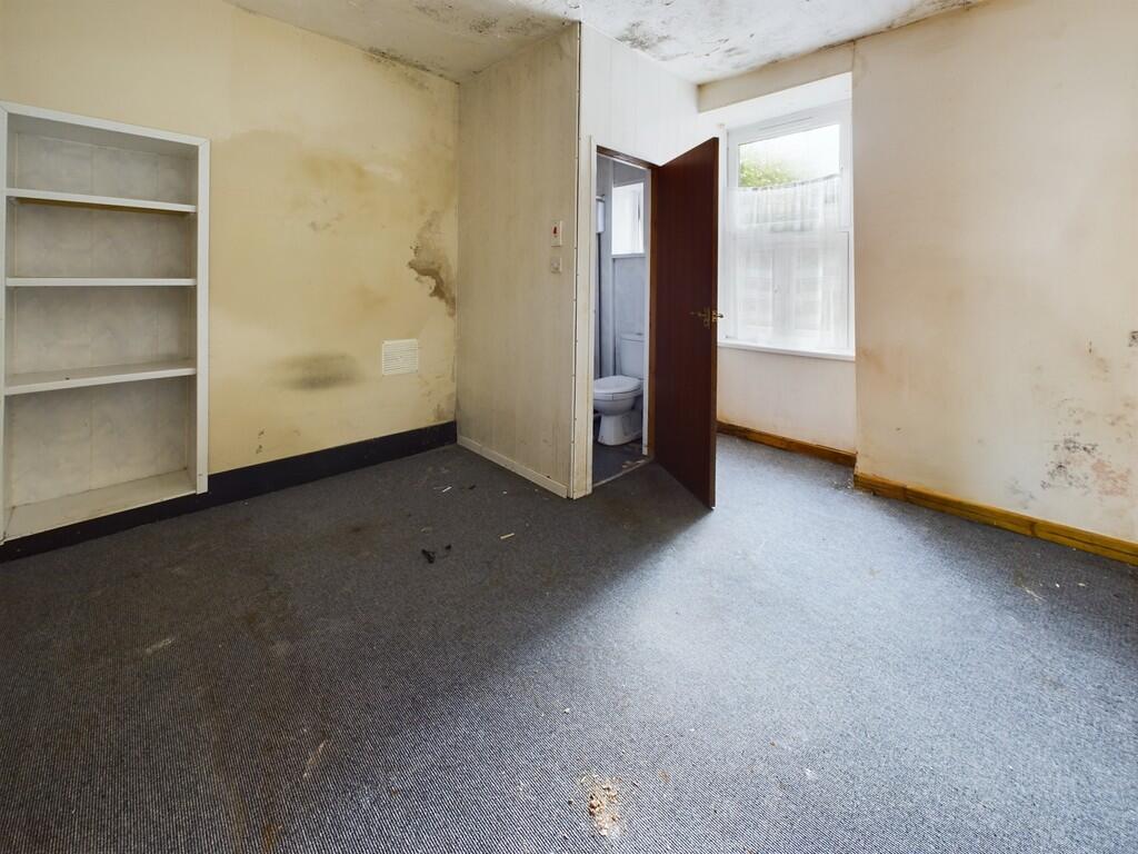 The property is in need of significant renovation. The provided photographs show considerable water damage, damp, peeling paint, and generally poor condition throughout. The carpets are worn and stained, and there is evidence of neglect. This will require substantial investment to bring it up to a habitable standard.