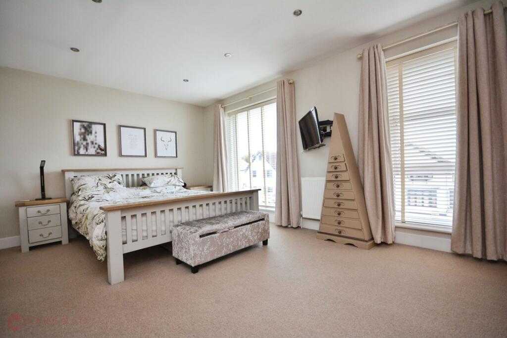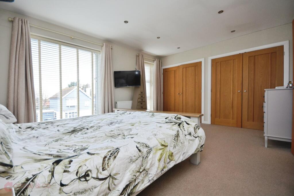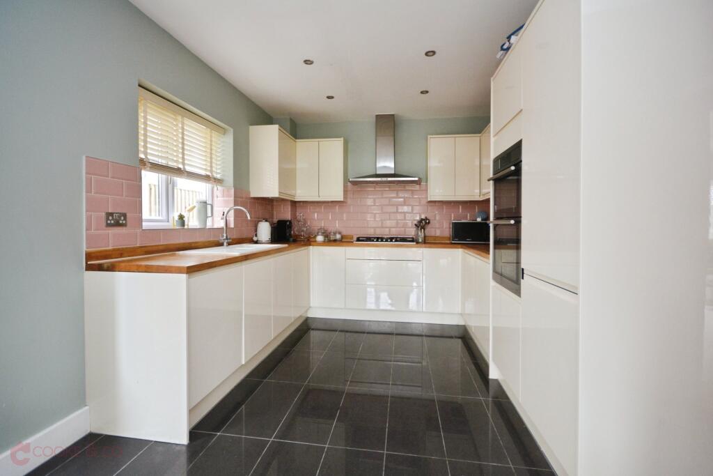 This property is a modern detached house located in Kingsgate, Broadstairs. The area benefits from being close to local amenities and transport links, including several primary schools within a reasonable distance. The property itself appears to be in excellent condition, with modern fixtures and fittings throughout. Images show a well-maintained garden, adding to its appeal. While specific square footage is not provided, the list price of £675,000 is higher than the average price for the area (£530,300), however, given the apparent high standard of the property and its modern features, this price may be justifiable. More information regarding the size of the property and plot would be needed to provide a more definitive assessment of value.