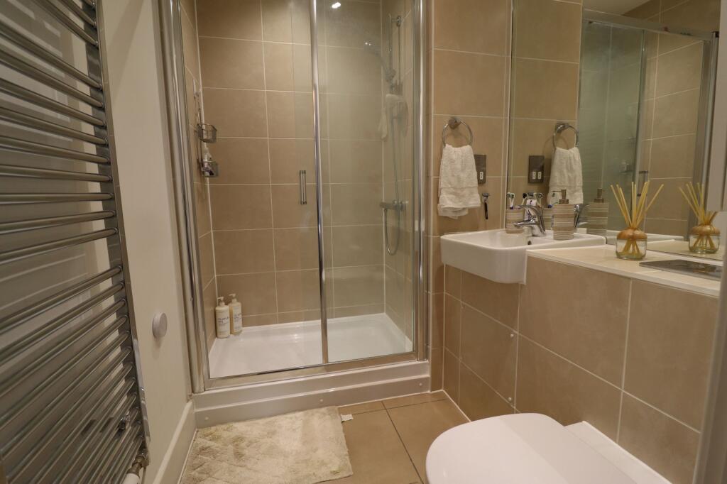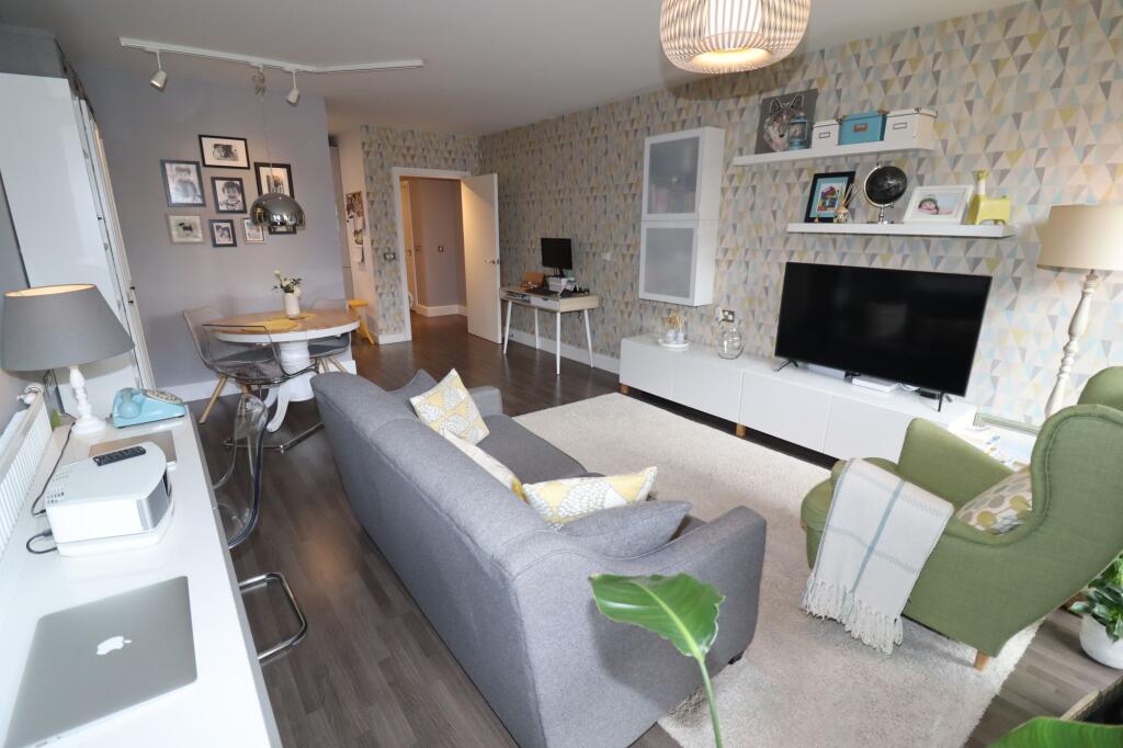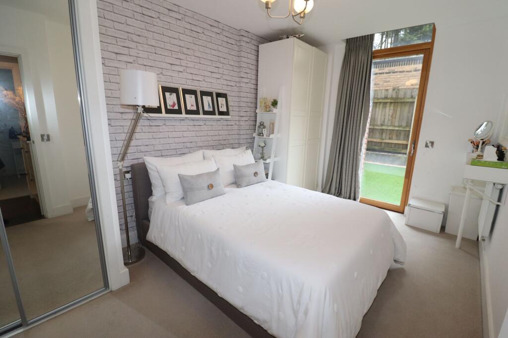 Immaculately presented modern two bedroom, two bathroom ground floor apartment with private front and rear gardens, available from early April on a part-furnished basis.