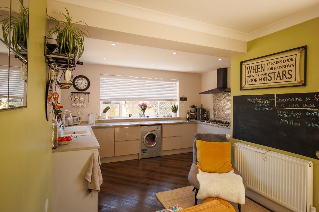 Three bedroom semi-detached bungalow. Modern breakfast kitchen and bathroom. First floor bedroom with en-suite bathroom. Gas central heating. Upvc double glazing. Wide drive with parking for several cars. South facing rear garden. No onward chain. EPC: D. Viewing is highly recommended.