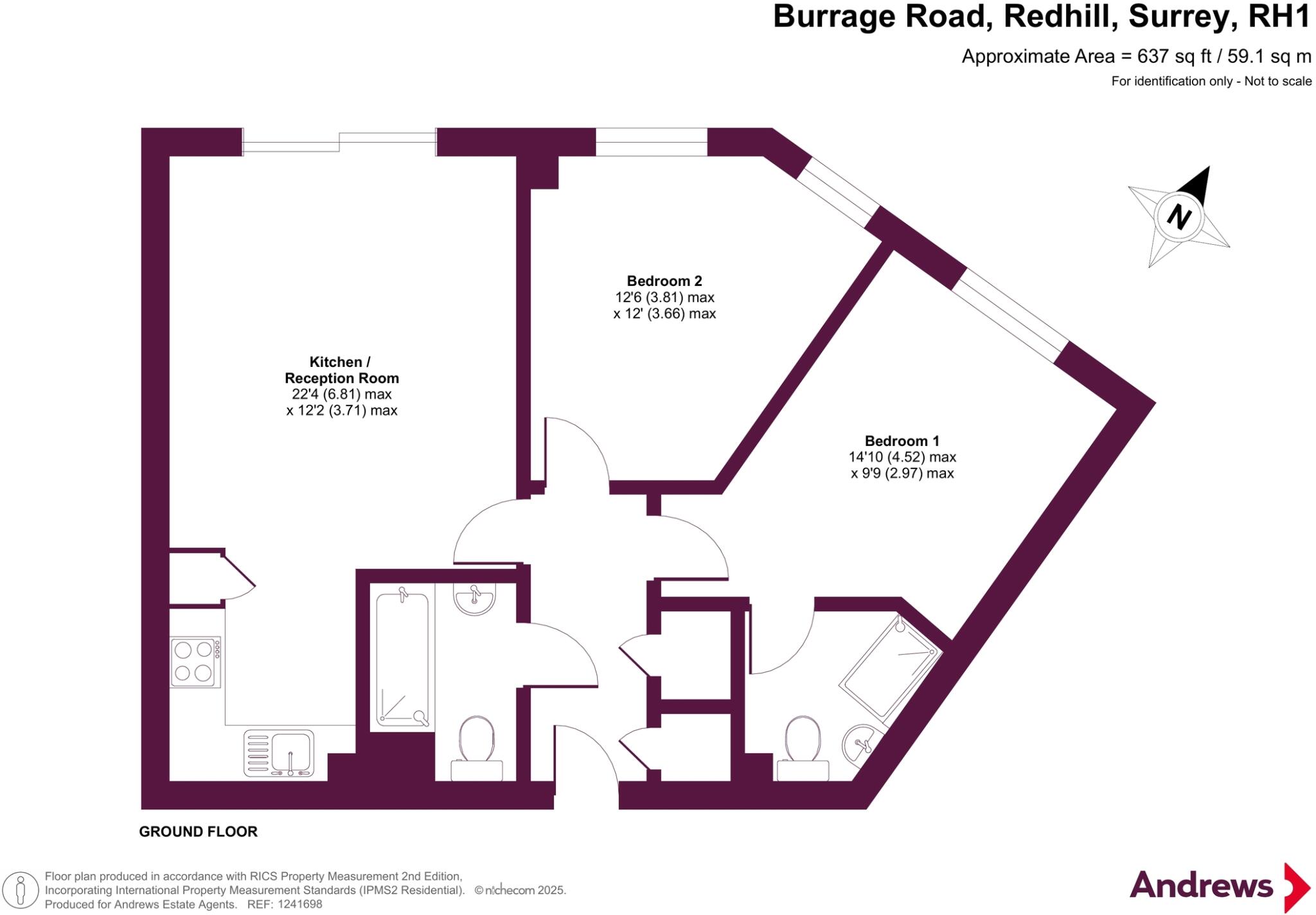 This two-bedroom apartment in Redhill, Surrey, offers a convenient location near Redhill train station and various local amenities, including schools. The property itself is a decent size at 636.15 sqft, featuring two bathrooms and a reasonably functional kitchen and living area. However, the interior design is dated, and the property could benefit from some modernization to enhance its appeal and value. A significant drawback is the lack of private outdoor space; the property appears to offer only access to communal green areas. The price of £265,000 falls within the range of similar properties in the area, but the need for potential renovations and the absence of a private garden should be considered by prospective buyers. The proximity to Redhill station is a major selling point, offering easy access to commuting routes. Further information on the specific features and condition of the apartment would be beneficial in providing a more comprehensive assessment.