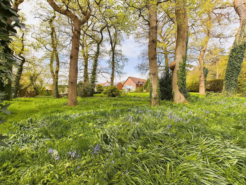 The property itself appears to be in good condition, with a recently modernised kitchen and bathrooms. The interior is well-presented and the exterior is attractive. The property benefits from extensive grounds, including a large garden with mature trees and a patio area. The size of the plot suggests ample outdoor space.