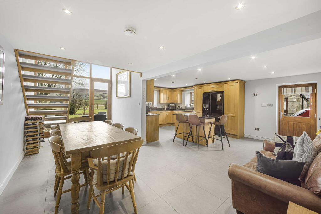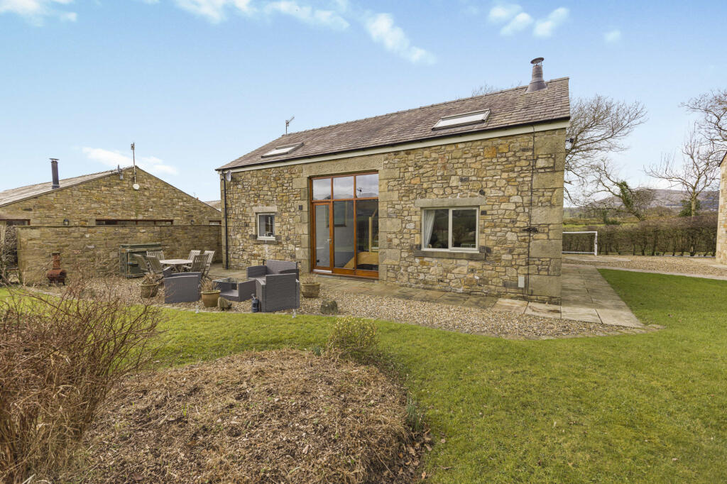 Located in AONB down a private track is a fabulous detached stone barn conversion with panoramic views of the local Fells. Spacious living accommodation with three double bedrooms in the main barn and a detached stone built garage with self contained annex. Rural living close to Chipping village.