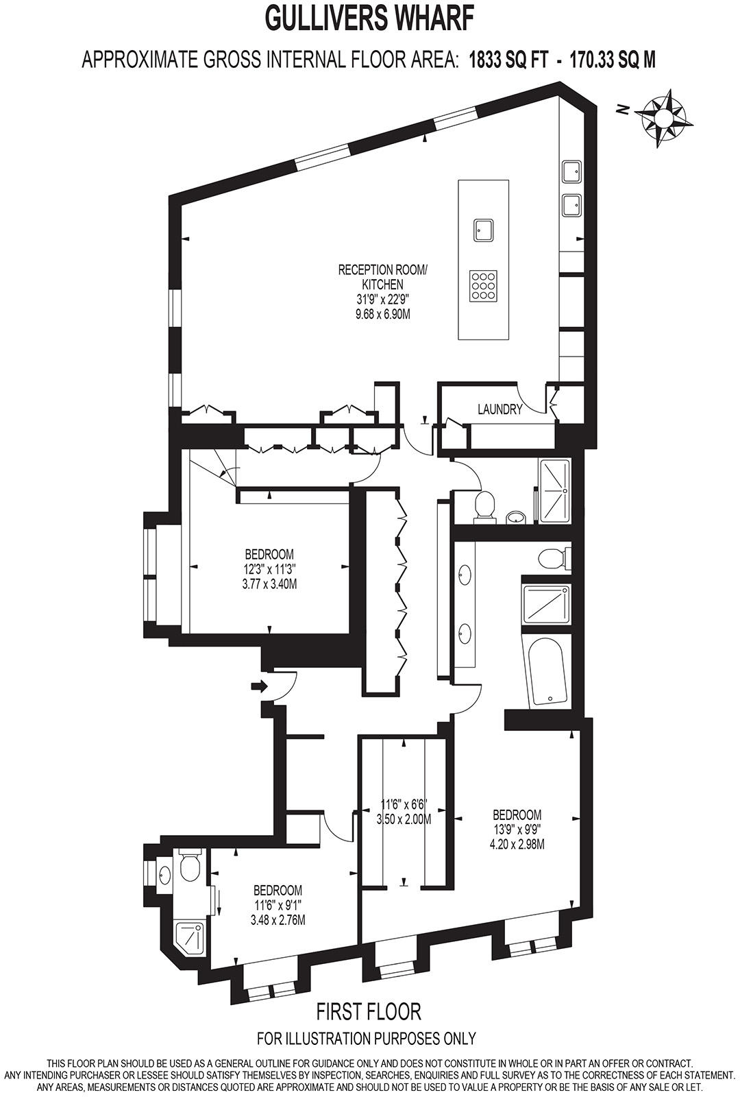 Gullivers' Wharf - A Grade II listed three double bedrooms, three bathrooms with ample storage space throughout the apartment, an open plan kitchen with a very airy east facing large reception.The apartment also comes with an underground secure allocated parking spot. Located in the heart of Wapping