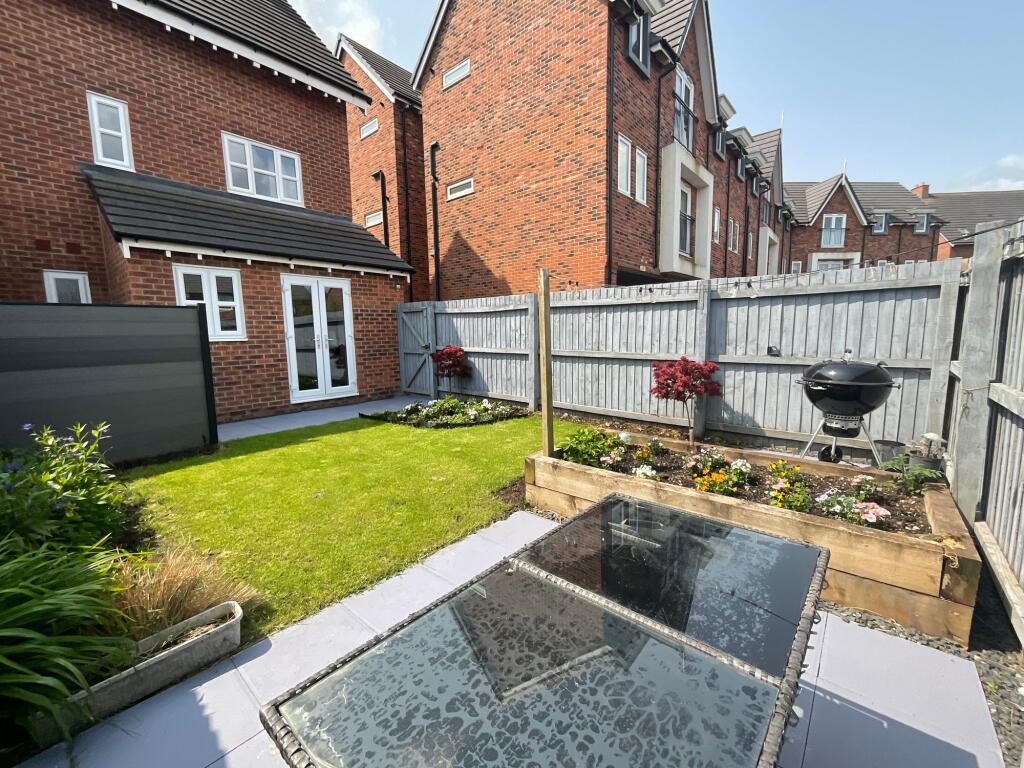 This property is a three bedroom, two bathroom terraced house located in Henhull, Cheshire. The property is modern and well presented, and benefits from a private rear garden and allocated parking. The location is convenient for local amenities and transport links, with Nantwich train station just 1.67km away. Several good schools are also within a short distance. While the property is smaller than the average house size in the area (1,471 sqft vs 2,238 sqft average), the list price of £325,000 is below the average price of £429,516, suggesting it may represent good value for money, although more information on the plot size would be beneficial for a full assessment.