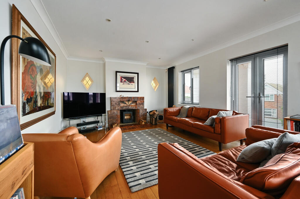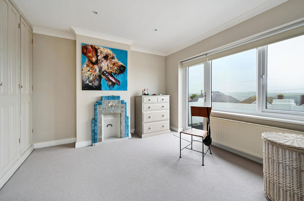 This superb four bedroom detached house has amazing panoramic sea and downland views and the fantastic rear garden backs onto fields. Fabulous homes like this rarely come to the market in this sought-after elevated location in Saltdean.