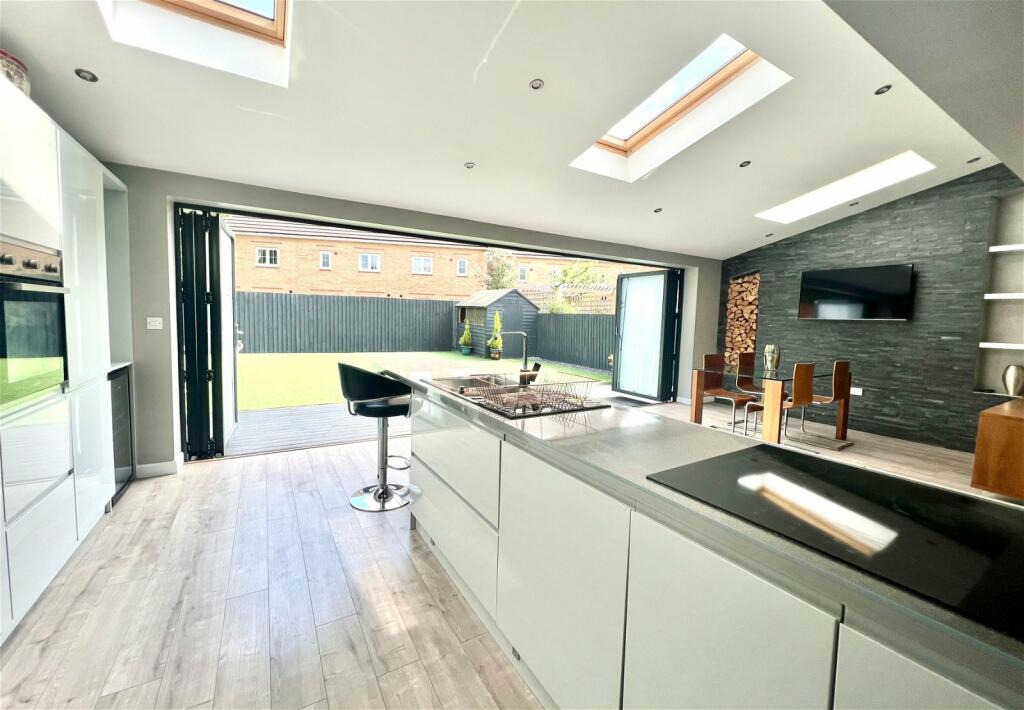 A stunning 4 bedroom detached family home modernised to an exceptional standard throughout boasting a substantial ground floor extension with bi-folding doors opening directly onto the rear garden inviting an abundance of natural light indoors.