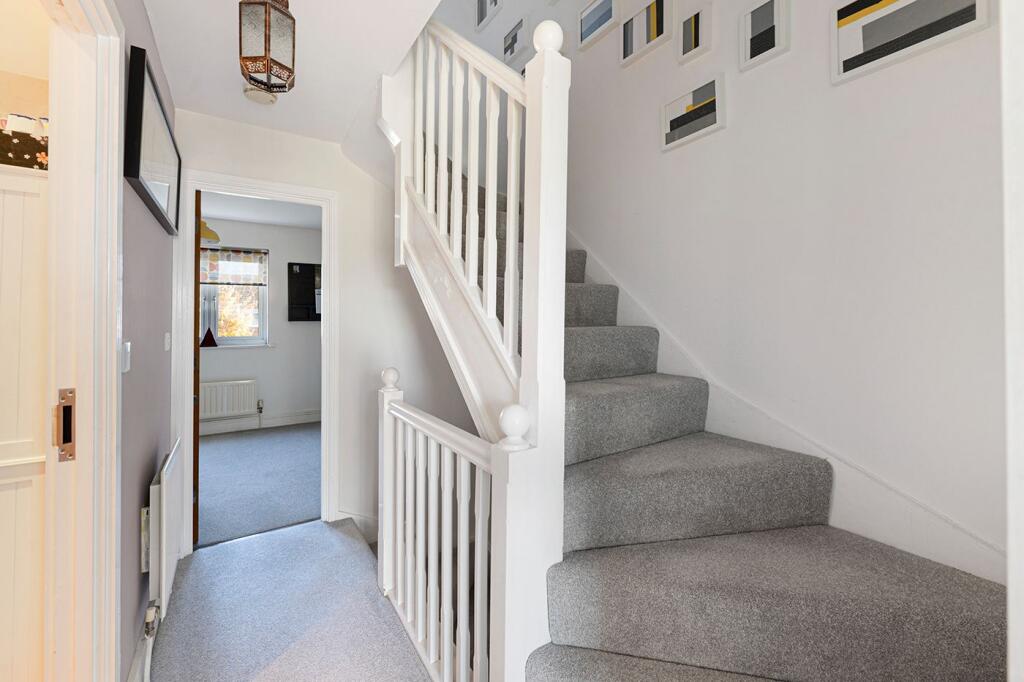 This is a 3-bedroom terraced house in Larkfield, Aylesford. The property benefits from a modern interior, a garden, and proximity to local amenities such as schools and transportation. The house appears to be well-maintained and in good condition. The asking price of £375,000 seems reasonable given the property’s features and location within the current market. The property is located on ‘The Lakes’ which is a desirable area.