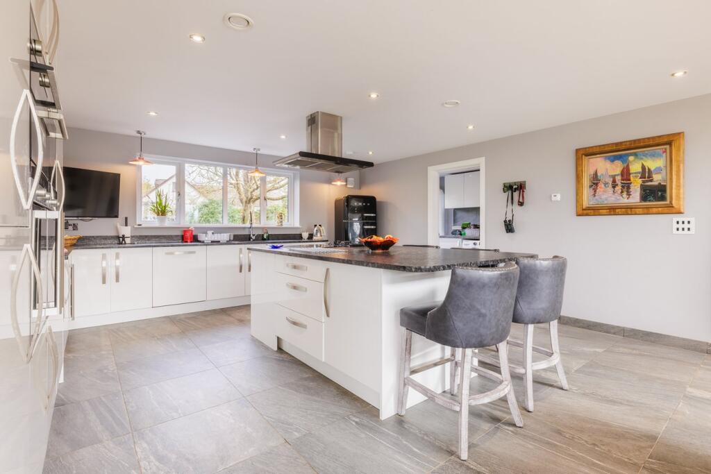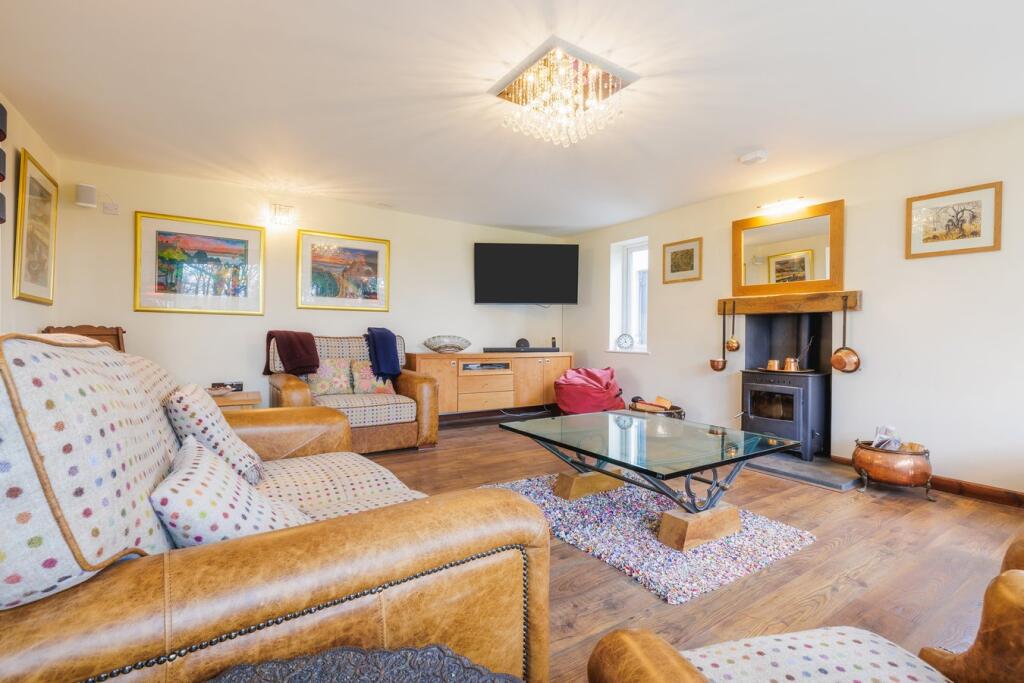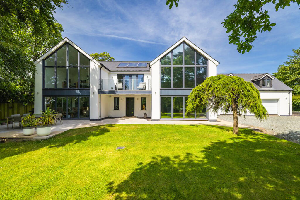 This is a modern detached property located in Rudbaxton, Pembrokeshire. The house features 5 bedrooms and 3 bathrooms. The property is in excellent condition, with modern interiors and a well-maintained exterior. It also includes a large garden with mature trees and a BBQ area. Haverfordwest is the closest town, offering access to amenities and transportation. The property is listed for £775,000, which is higher than the average property price in the area but reflects the property’s size, condition, and features.