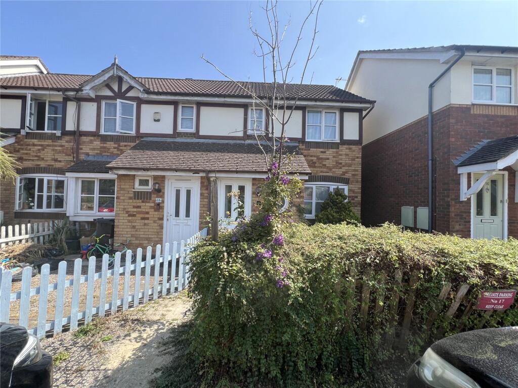 A two-bedroom terraced house in Kingswood, Bristol. The property is located near several schools and transportation links. The interior appears to be in good condition, while the exterior, particularly the gardens, could use some attention. The price per square foot is higher than the average for the area.