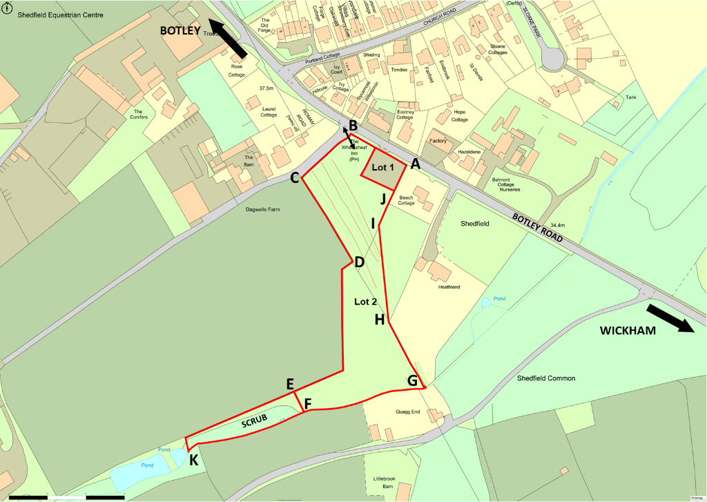 LOT 2 - Approx. 2.66 ac in all pasture land (2.20 ac) (scrub 0.46 ac). Road frontage & services being available. Water Connected. Hope of Development Potential in the Future. Additional land available comprising an area of hardstanding (0.18 ac) currently being used as a Car Park (LOT 1).