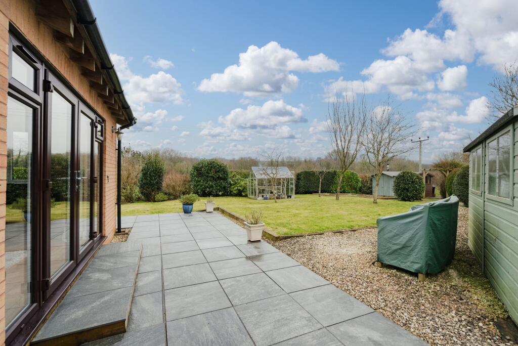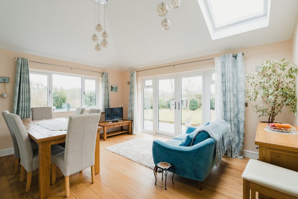 Extended and very well presented village property on a large corner plot overlooking fields, with 4 bedrooms & 2 reception rooms