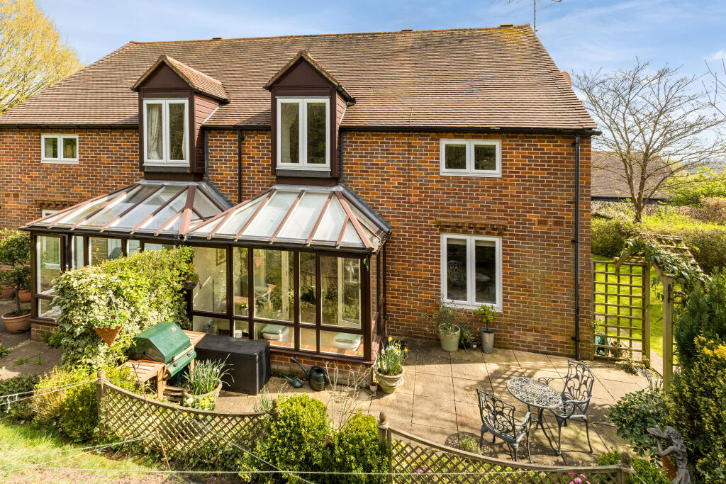 Situated in the heart of the village, an updated 3-bedroom, semi-detached property for the over 55s with southerly, landscaped communal gardens, heated indoor swimming pool and garage. NO ONWARD CHAIN