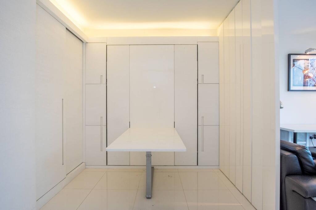 LONG LET. This bright and spacious studio flat boasts stylish interiors and a private balcony with phenomenal views, situated on the sixteenth floor within the desirable Pan Peninsula development.