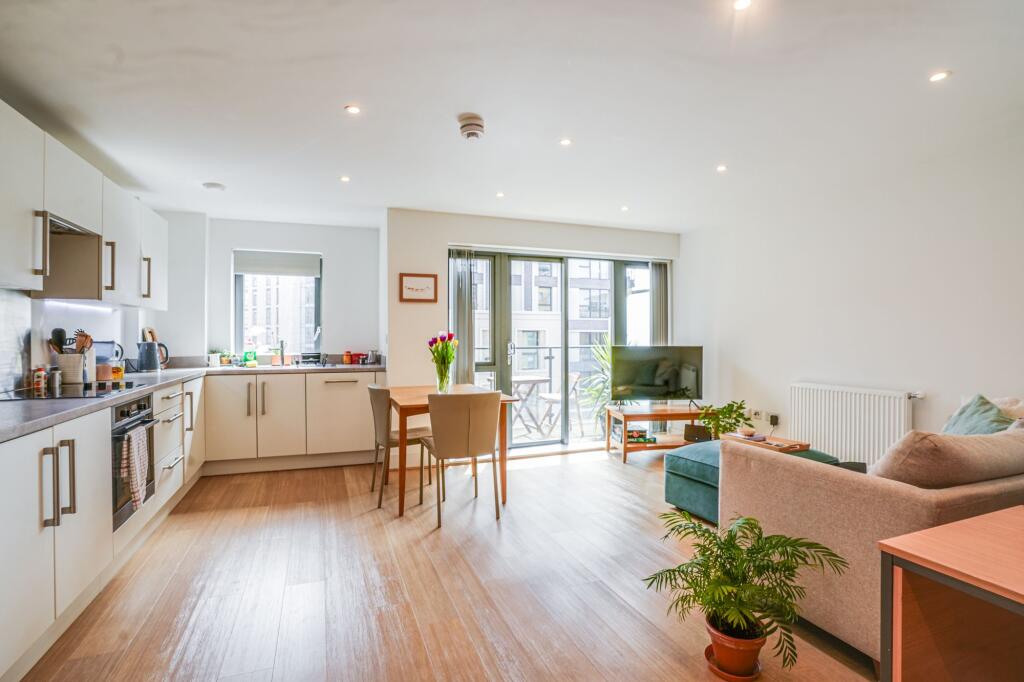Stylish 1-bed flat in prime location. Spacious bedroom, modern bathroom, open-plan kitchen with high-quality appliances, south-facing balcony, wooden flooring. Vibrant area with great transport links.