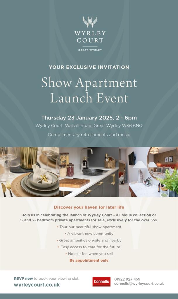 WYRLEY COURT - A beautiful new collection of 32 retirement apartments, purpose designed for the over 55's! Contemporary and energy-efficient, Wyrley Court from award-winning MACC Retirement offers a choice of one and two bedroom private apartments, conveniently located in the heart of Gre...
