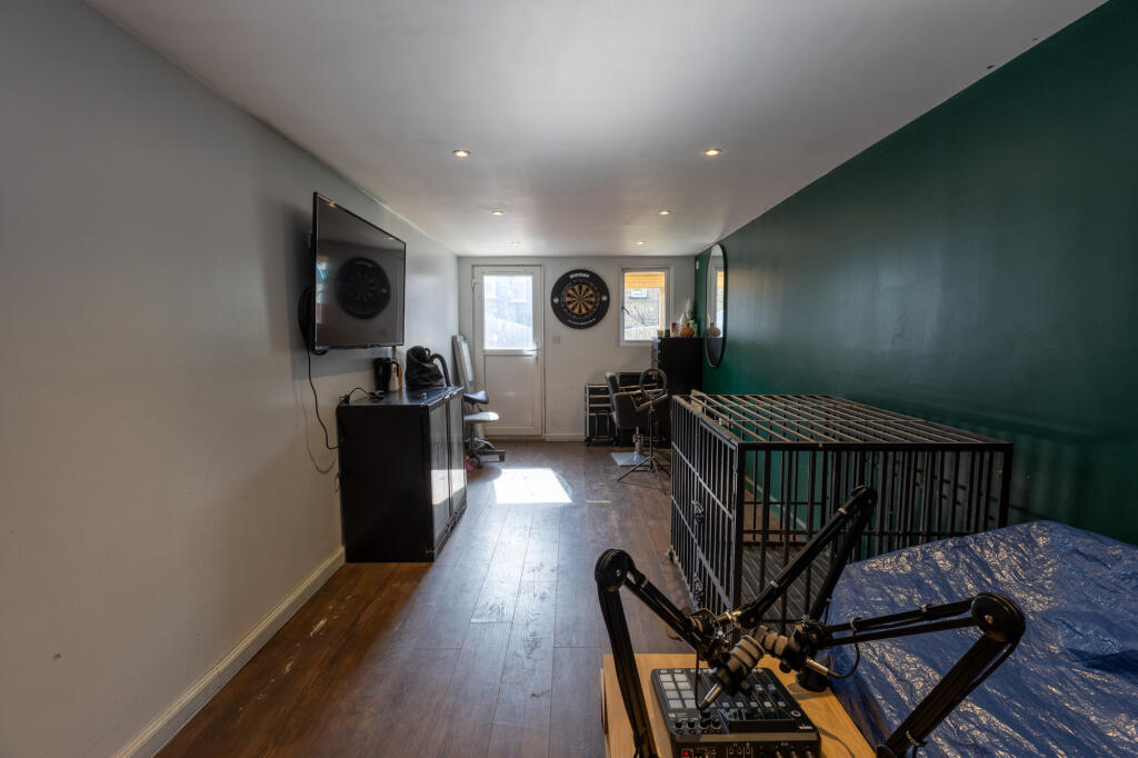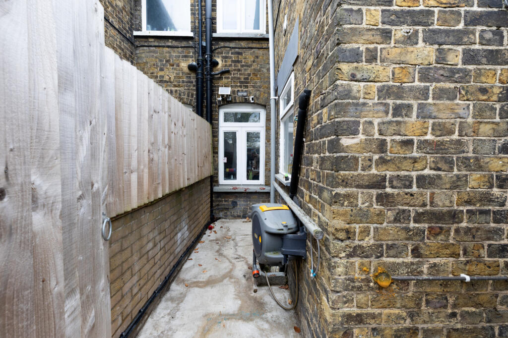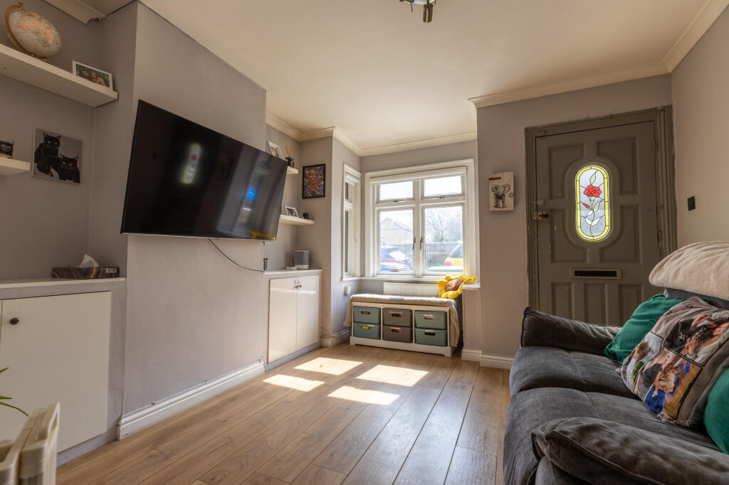 Based on the provided photographs, the property appears to be in good condition. The interior has been recently decorated and updated with modern flooring and fixtures. While some areas show signs of wear and tear typical of an older property, there is no evidence of significant damage or the need for extensive renovation. The garden is relatively small but well maintained with artificial turf.