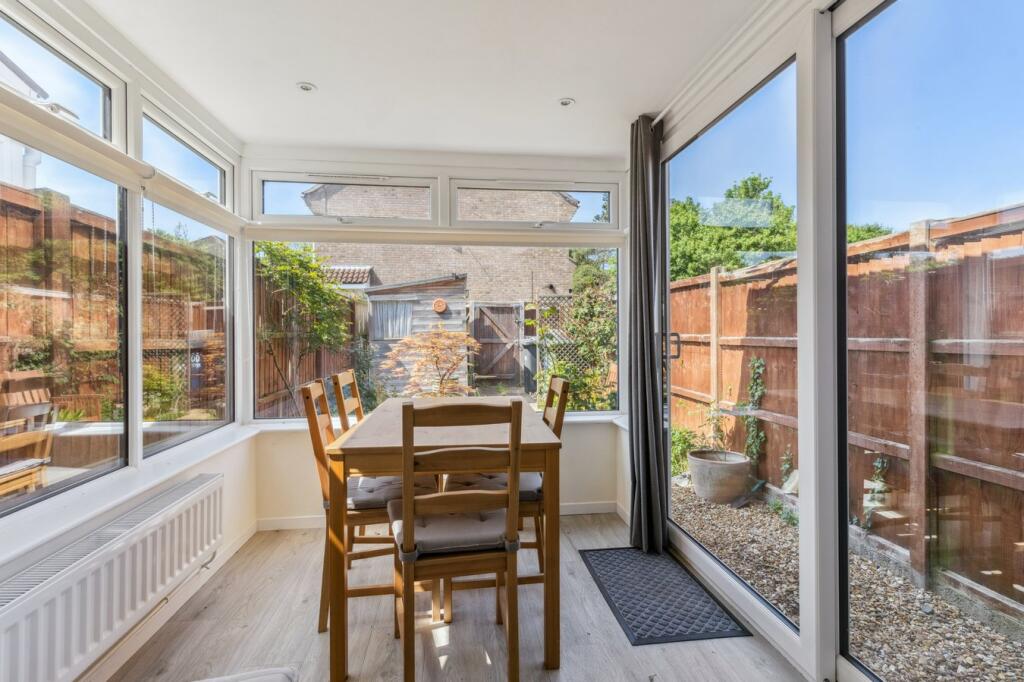 A modern two bedroom terrace house located within this much sought after location, benefitting from a modern fitted kitchen, dining/garden room extension, PVCu double glazing, driveway to the front, single garage (en-bloc) and no forward chain. Viewings strictly by appointment.