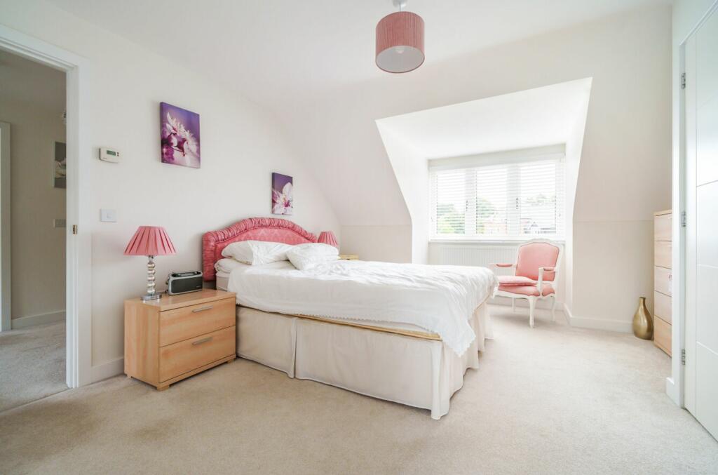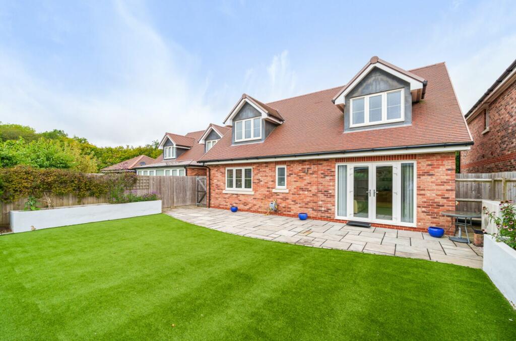 DETACHED CHALET STYLE BUNGALOW with a low maintenance SOUTH FACING GARDEN. In an IMMACULATE condition on an EXCLUSIVE SMALL DEVELOPMENT. Spacious kitchen/dining room, THREE BEDROOMS, three bathrooms, INTEGRAL GARAGE. EPC-B