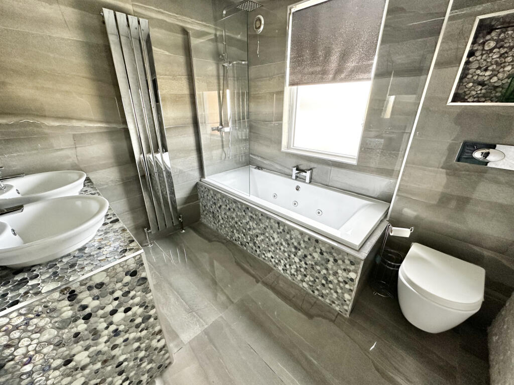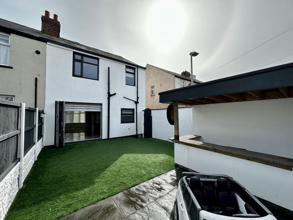 This property is a 3 bedroom semi-detached house located on Trent Road in Blackpool, Lancashire. The property has recently undergone a significant modernisation, boasting a contemporary kitchen and bathroom. The images showcase a modern interior with a tiled floor throughout the ground floor and carpeted bedrooms. There is also a good-sized rear garden with artificial turf and a covered patio area. The location is close to local amenities, schools and transport links, including Blackpool Pleasure Beach and Blackpool South train station. However, the average house price in the area is considerably higher than the listed price of this property. This could be due to the smaller plot size or other factors not immediately apparent from the provided information.