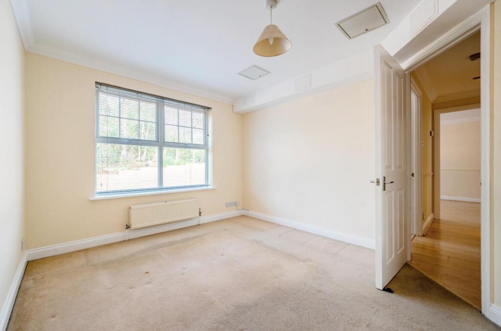 This is a two-bedroom apartment located in St Michaels Road, Camberley. The property is listed for sale with Knights Property Services at a price of £210,000. The apartment is located in a purpose-built block and benefits from communal grounds. The internal accommodation comprises two bedrooms, a bathroom, a living room, and a kitchen. The property appears to be in need of some modernisation, particularly the bathroom and carpets. Camberley is a popular town in Surrey, offering a range of amenities, including shops, restaurants, and schools. The town also benefits from good transport links, with a train station providing regular services to London.