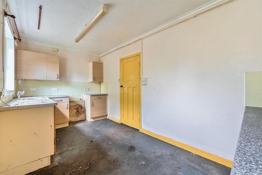 AUCTION. AUCTION. AUCTION - Thursday 24th July 2025. An elevated two bedroomed end of terrace house for modernisation with garden.
