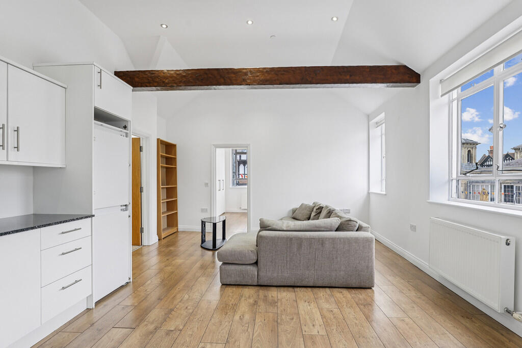 Top Floor 1 Bedroom Conversion Apartment located with the Historic Market Place in the heart of Kingston upon Thames. This rarely available character apartment offers far reaching views over the Kingston's historic market place, exposed beams, 523 sq ft of internal living space including a spac...