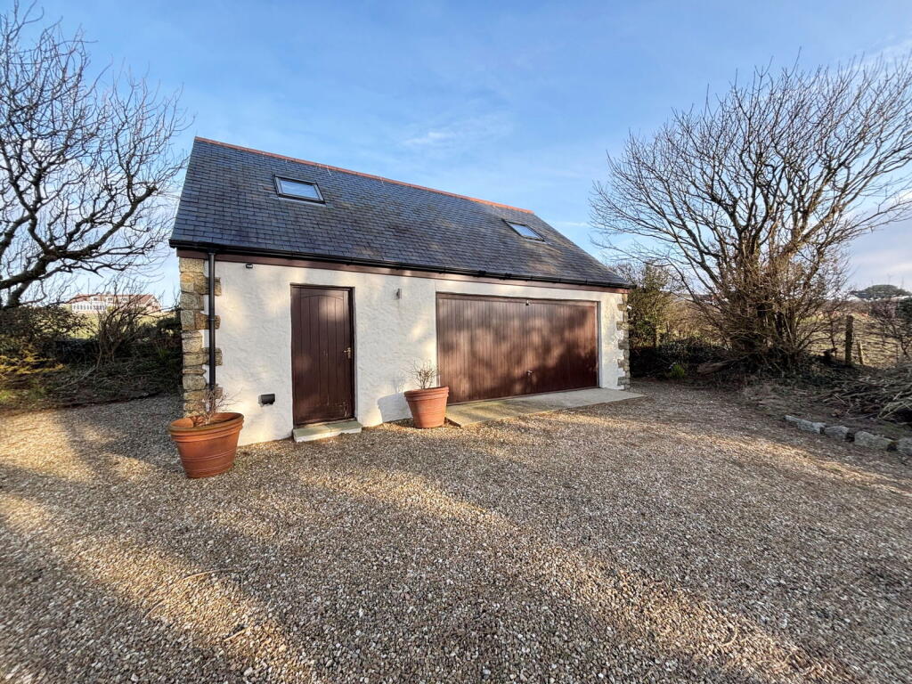 This detached residence enjoys four bedroom accommodation with a generous garden, sweeping drive and double garage. Views toward St Ives bay. No onward chain